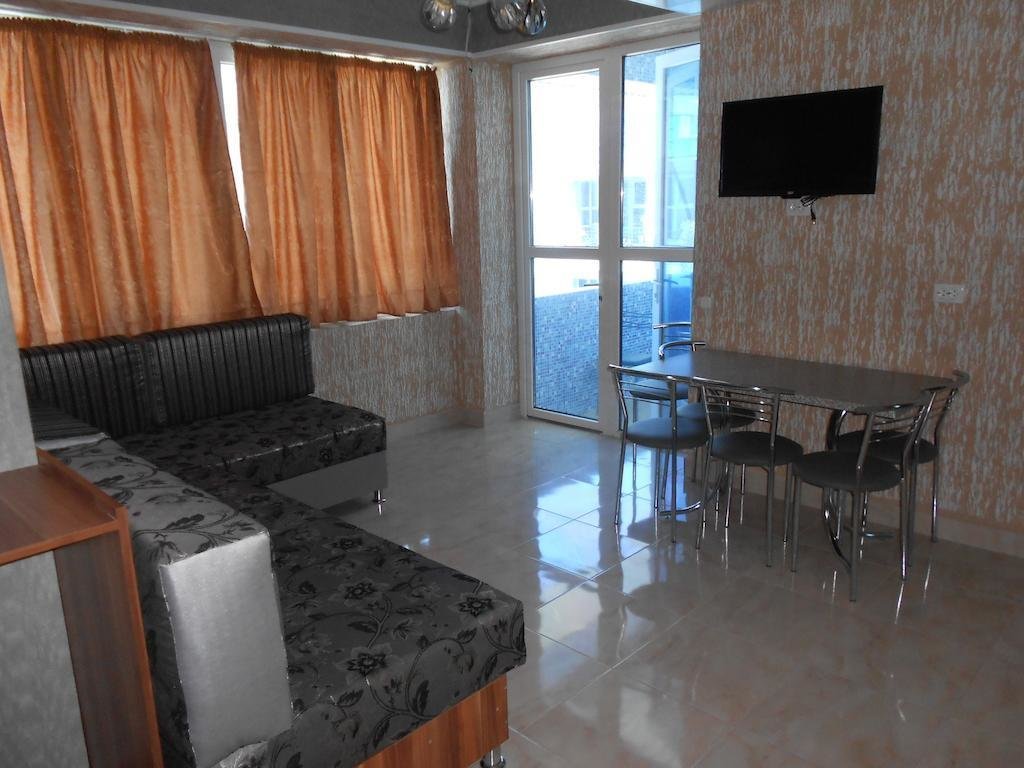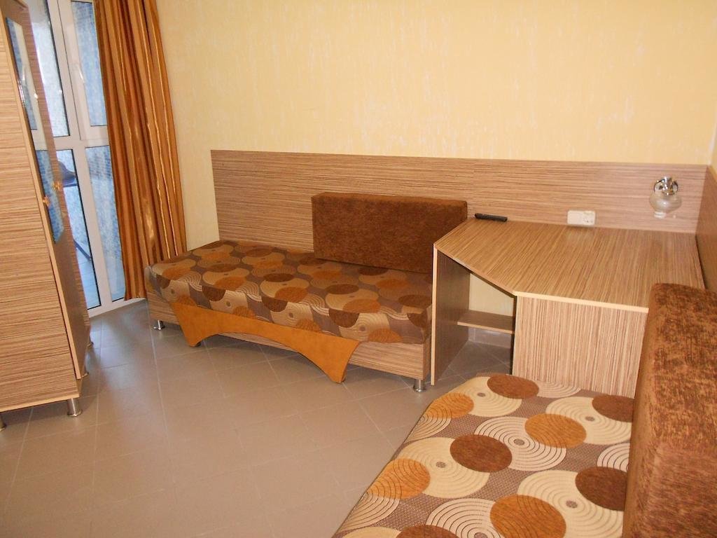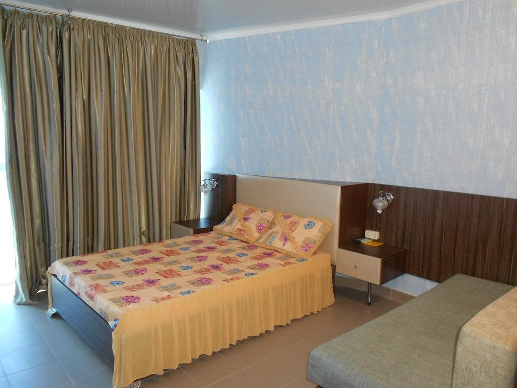 Отдыхали в пансионате с двумя детьми. В отеле всё новенькое. Жили в двухместном номере. Воспользовались трансфером, так как мы с детьми. Фотографии сайта соответствовали действительности. Номер выходил во внутренний двор. Всё ухожено, зелено. Имеется бассейн, детская площадка. Есть детская комната с нянечкой. Столовая отличная. Ассортимент нас порадовал, всегда на выбор 2-3 каши, сырники, выпечка. В ресторане "Золотая рыбка" обедали и ужинали, кухня выше всяческих похвал, а пейзаж загляденье. Пляжная зона с зонтиками и лежаками, песок, море достаточно чистое. Убирают стабильно. Много развлечений для детишек : батуты, аттракционы с горками. Ездили в Евпаторию прогуляться и поменять картинку 20 мин.на автобусе. Понравилось, всем спасибо!!! Отдельно хочу поблагодарить туроператора "Нафтуся тур", менеджера Анну за дельный совет. Всё на высоком уровне, советую!!!