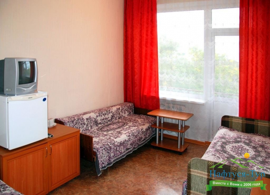 Отдыхали с подругой в санатории в октябре.Путевки приобрели через тур агенство"Нафтуся". Тур агенством довольны,обслуживание было на высшем уровне, даже скидку в 5% нам сделали.Понравилось обслуживание ,душевное отношение персонала ,домашняя обстановка .Питание тоже понравилось,кормили вкусно .меню очень разнообразное и все приготовлено с душой.Бассейн действительно с минеральной водой очень большой,раздевалки просторные,шкафчиков для одежды хватает.Отдельно хочу сказать о территории:огромная ,ухоженная никакого шума от дороги.Получили большое удовольствие от прогулок по территории санатория .Хочется вернуться сюда еще.