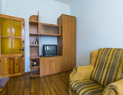 кресло-кровать, кровать односпальная, прикроватные тумбочки, шкаф встроенный