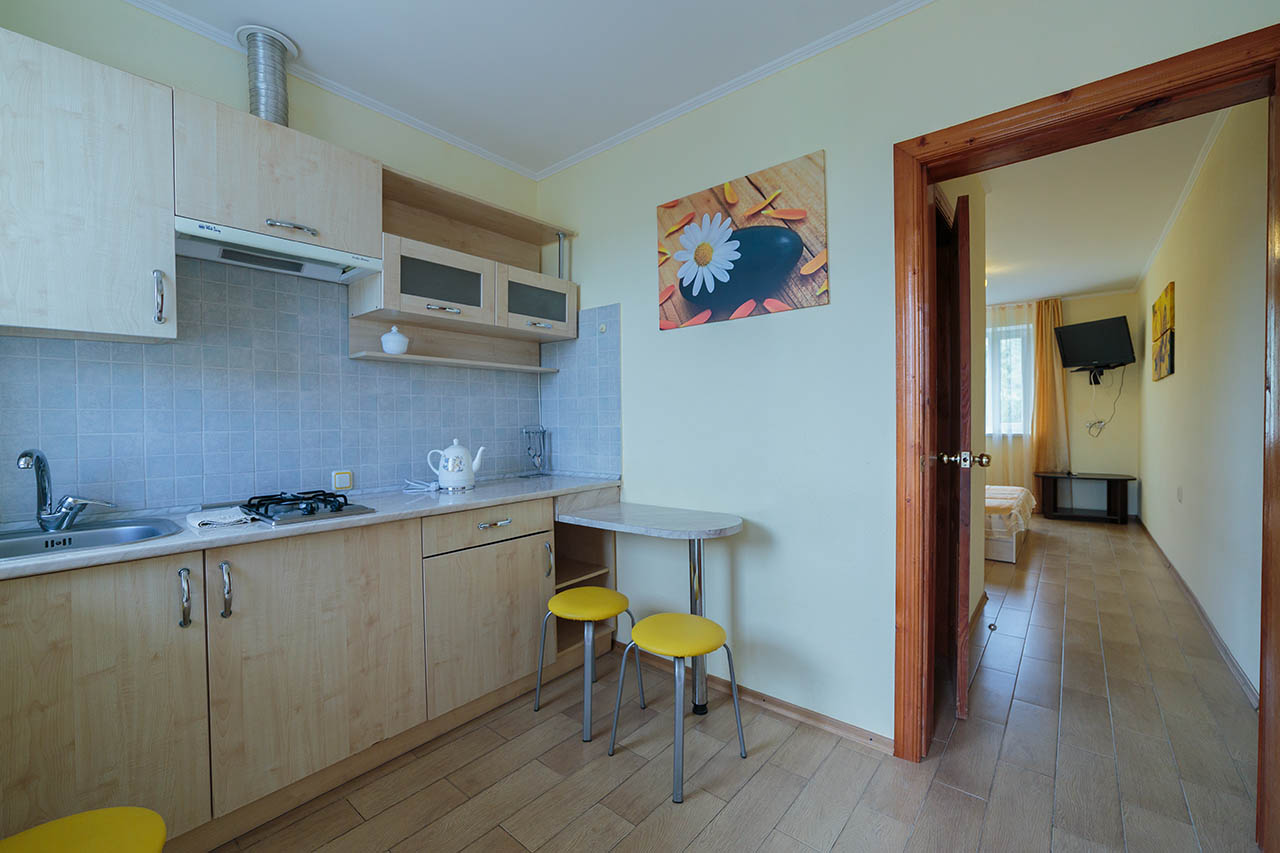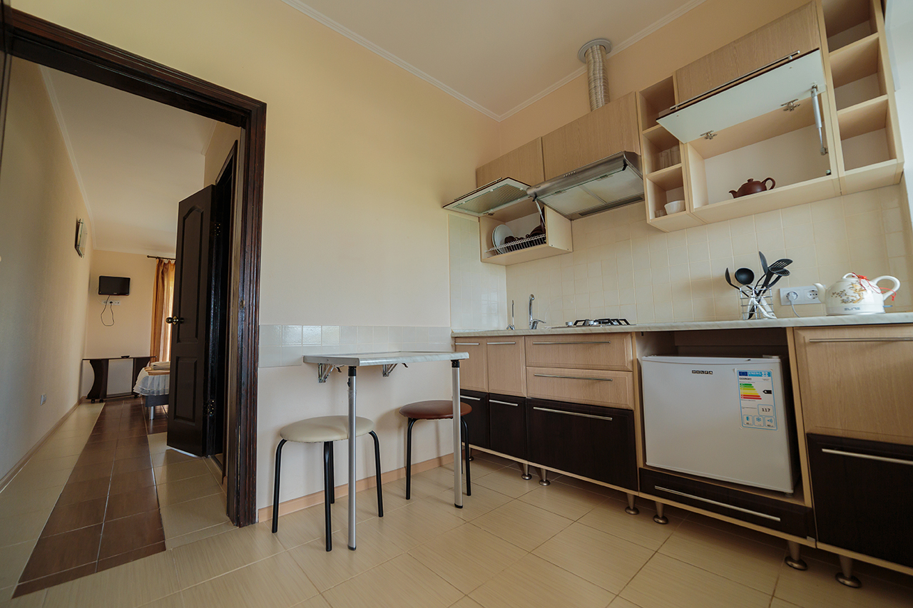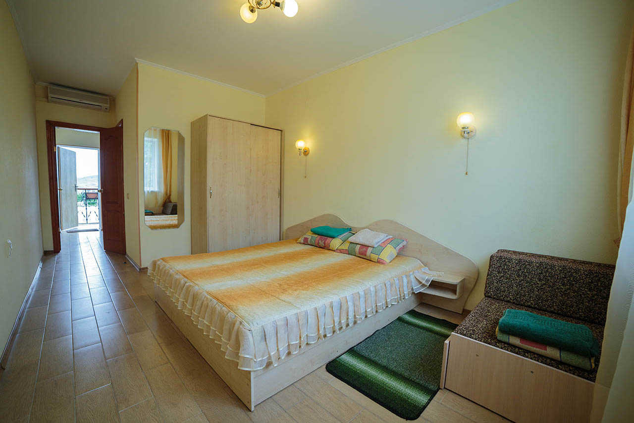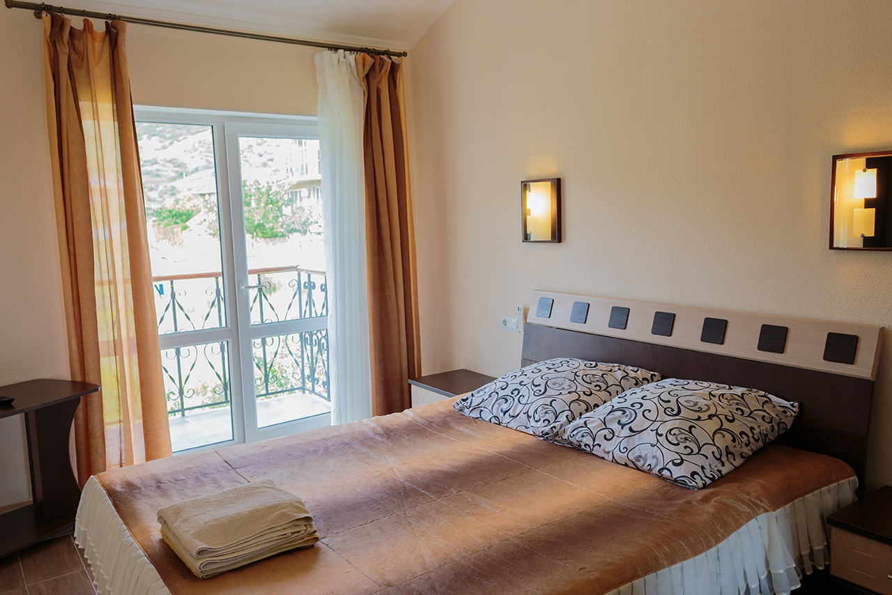 Уютное место, чистый номер, в котором было все, что нужно для комфортного проживания. В кухне - минимум нужной посуды, больше ничего не потребовалось. Взяли номер с балконом на третьем этаже - красотища! просыпаешься утром, а из окошка видно Карадаг :) тихо и спокойно, отель прям семейный-семейный.