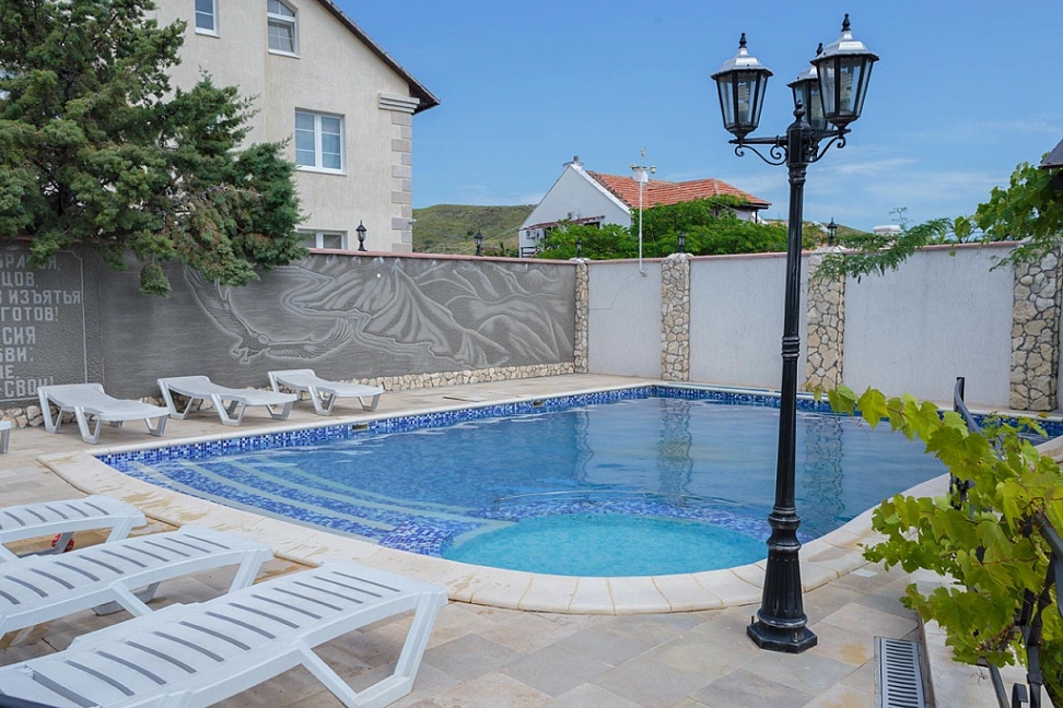 Гостиница мне показалась просто раем каким-то! Я приезжала с подругой, и днём мы изучали окрестности Коктебеля. К вечеру уставали, и вернувшись в гостиницу, такой кайф был искупаться с бассейне! Лично я ещё до завтрака купалась в бассейне, а потом поднималась в номер.