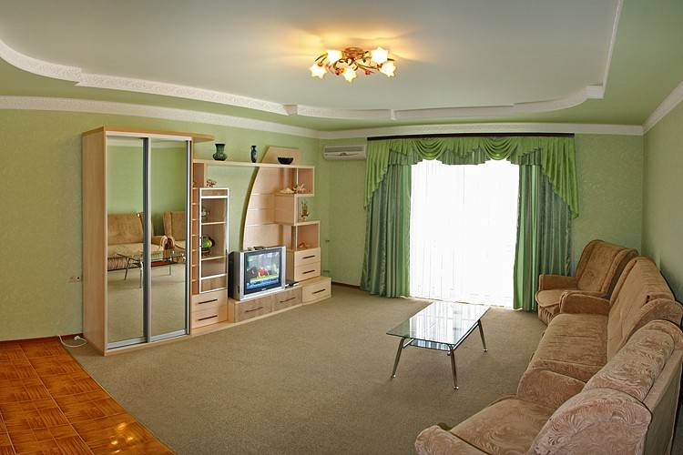вешалка, диван раскладной, зеркало, кресло-кровать, кровать двуспальная, прикроватные тумбочки, стол, шкаф