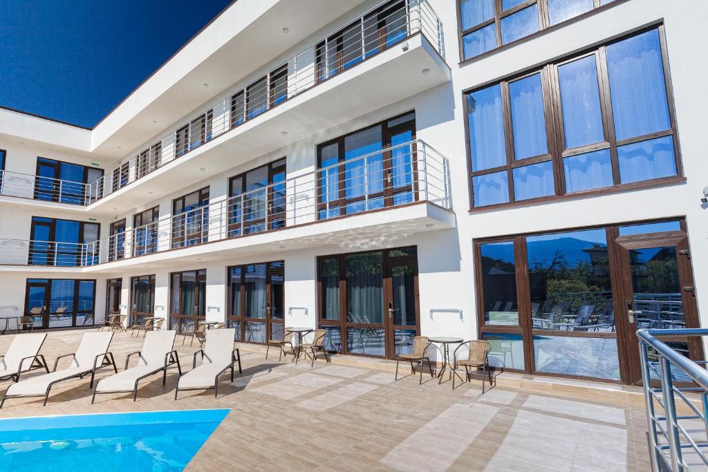 Современный, новый, комфортабельный отель «Сан Рей» расположился у старинного парка графов Орловых-Денисовых в Отрадном, в Ялте.