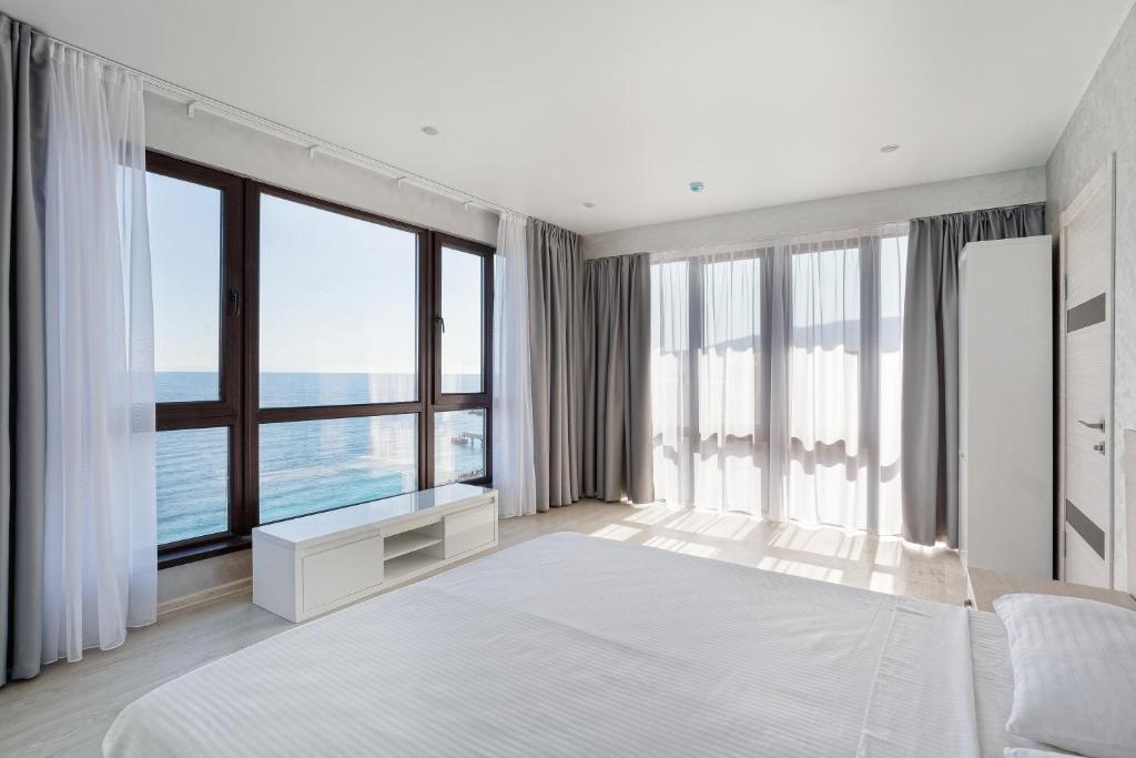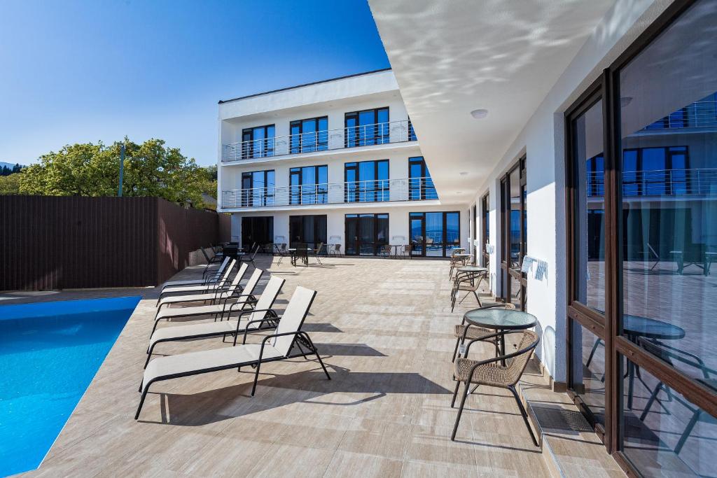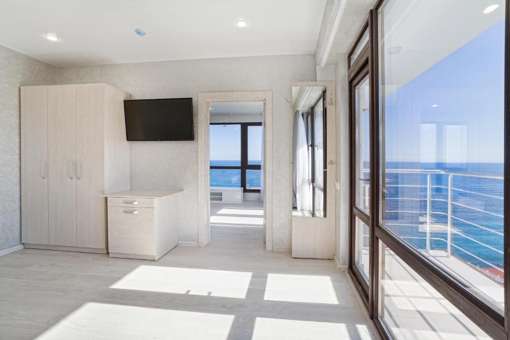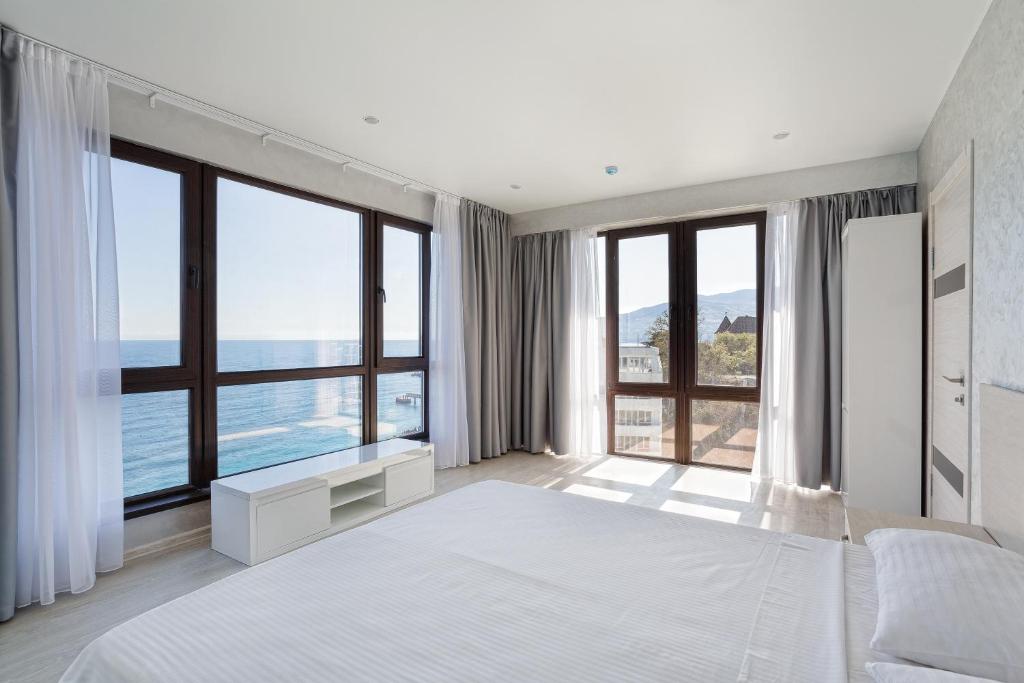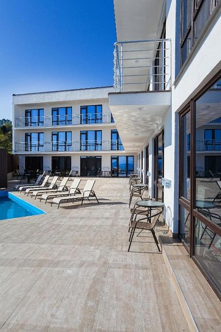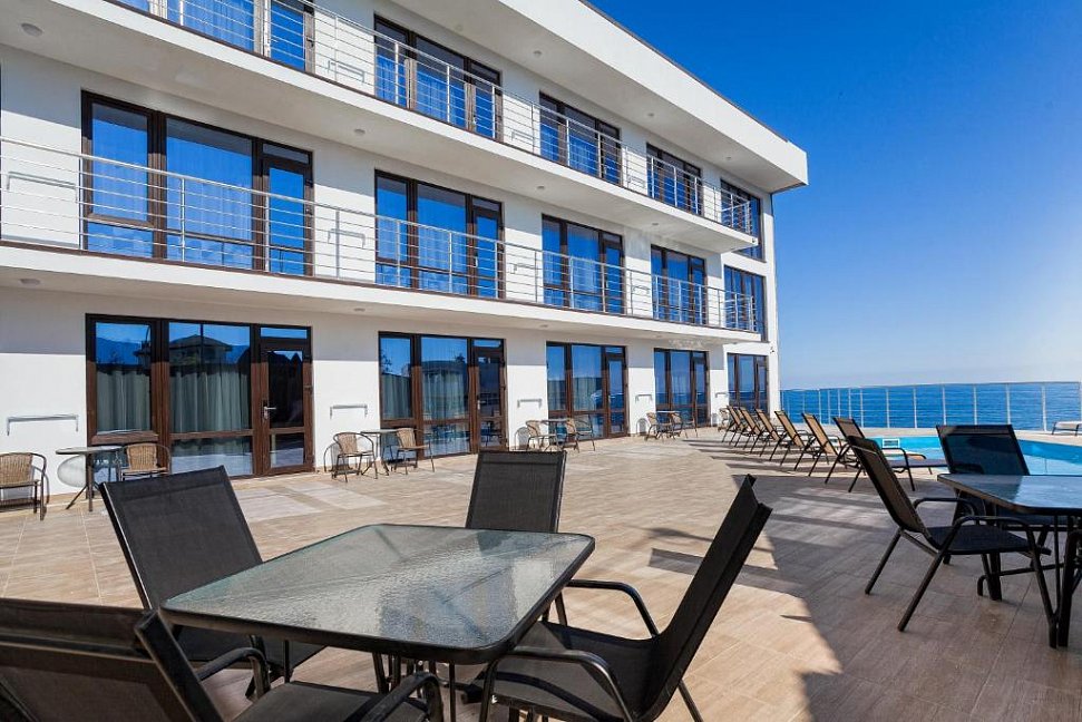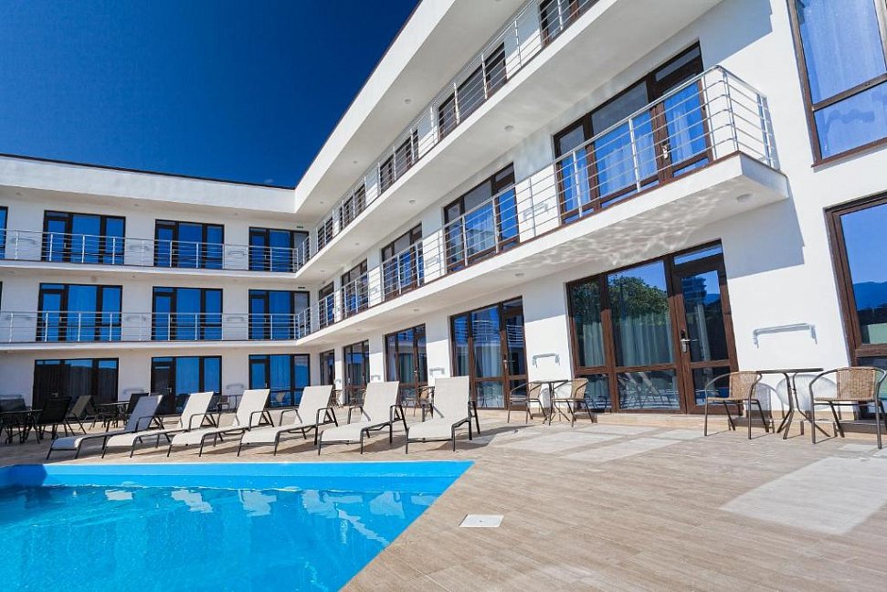 Удивительный вид из номеров отеля на Черное море и бухту, расстилающуюся под вашими ногами, просторный бассейн с потрясающим видом, шаговая близость к морю с прекрасным мелкогалечным пляжем – это первое, что можно сказать о нашем отеле в Ялте.