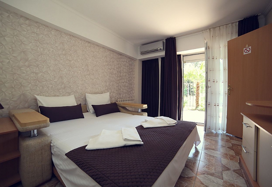 В нашем отеле номера на любой вкус: апартаменты для большой семьи или компании, люксы и стандарты. Во всех номерах ортопедические матрасы, кондиционеры или сплит система, подогреваемые полы, стабильный WiFi.