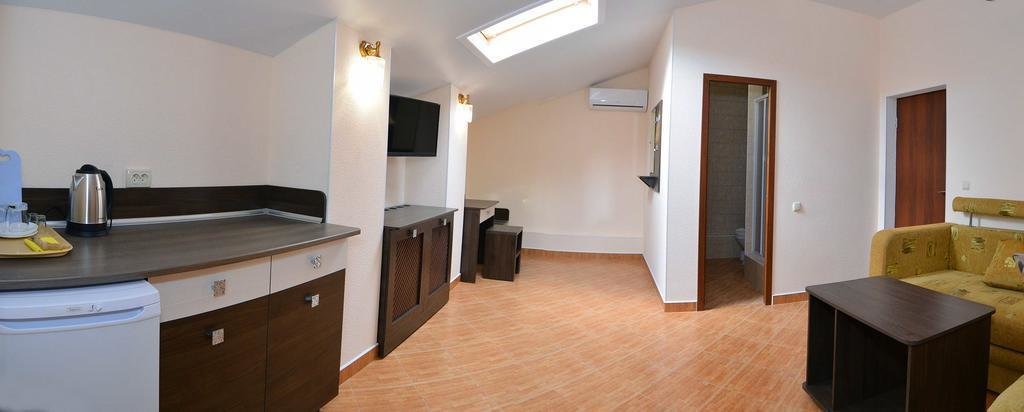 Останавливались в данном отеле семьёй из трёх человек этим летом. Брали номер категории Полулюкс в котором благополучно разместились, свободно передвигались, не чувствовали дискомфорта. В комнате был в наличии телевизор, шкаф, сейф, раскладной диван, стол, большая кровать.