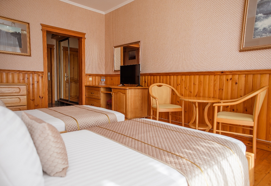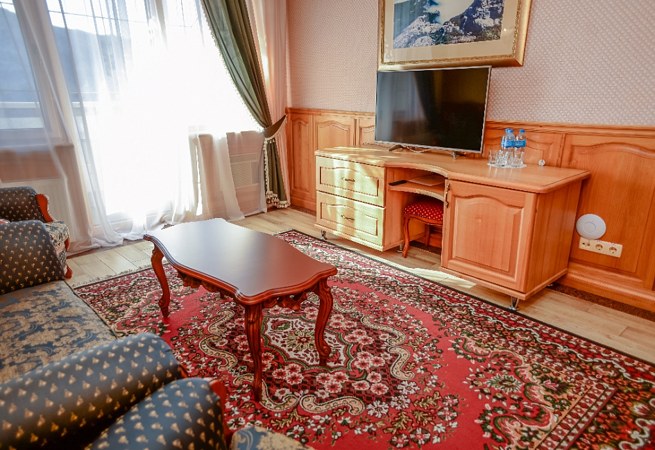Очень красивый отель, отделка камнем и деревом (без пластика) в классическом стиле. Наш номер был выдержан в стиле отеля. Уборка хорошая. Обслуживание на высоком уровне. Отдельно хочу отметить ресторан.