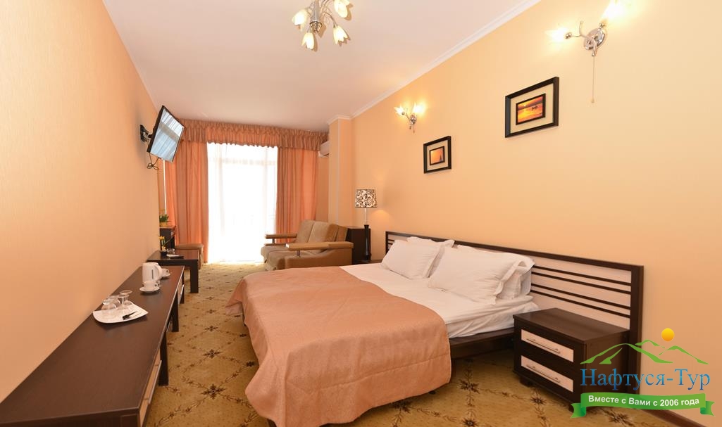 кондиционер, сейф, телевизор ЖК, холодильник, чайный набор посуды, электрочайник