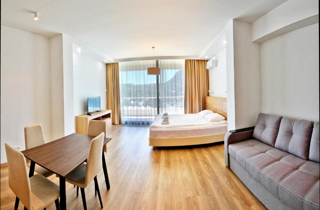Отдыхали в Ривьере семьёй с 2-мя детьми, удовольствие от отдыха у всех! Уютные апартаменты с шикарным видом на море, Аю-Даг и Адалары, в ресторане вкусная и разнообразная кухня, приятная обстановка и клиентоориентированный персонал! Отдельные слова благодарности девчонкам-аниматорам Лизе и Насте за ежедневный заряд бодрости и прекрасного настроения – стретчинг с элементами йоги, дыхательная гимнастика, аквааэробика, активные игры с детворой в бассейне – каждый нашел занятие по душе! Развивайтесь и процветайте! И ждите нас, мы снова к вам приедем! Крым прекрасен!