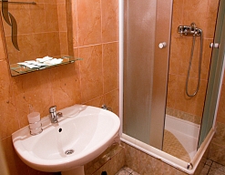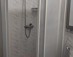 с душевой кабиной, туалетные принадлежности, фен