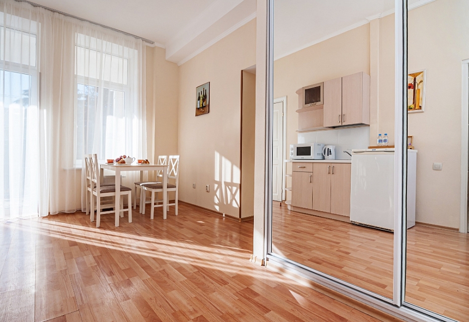 Расположение: 100 м до пляжа, 100 м до центра, 97 км до аэропорта Симферополь