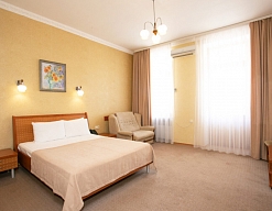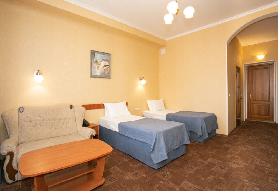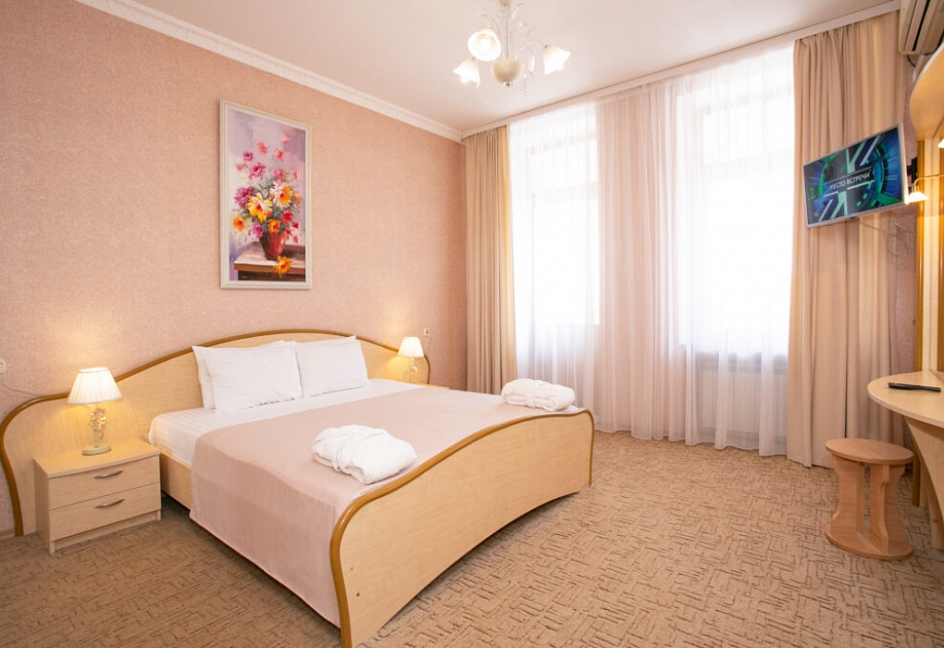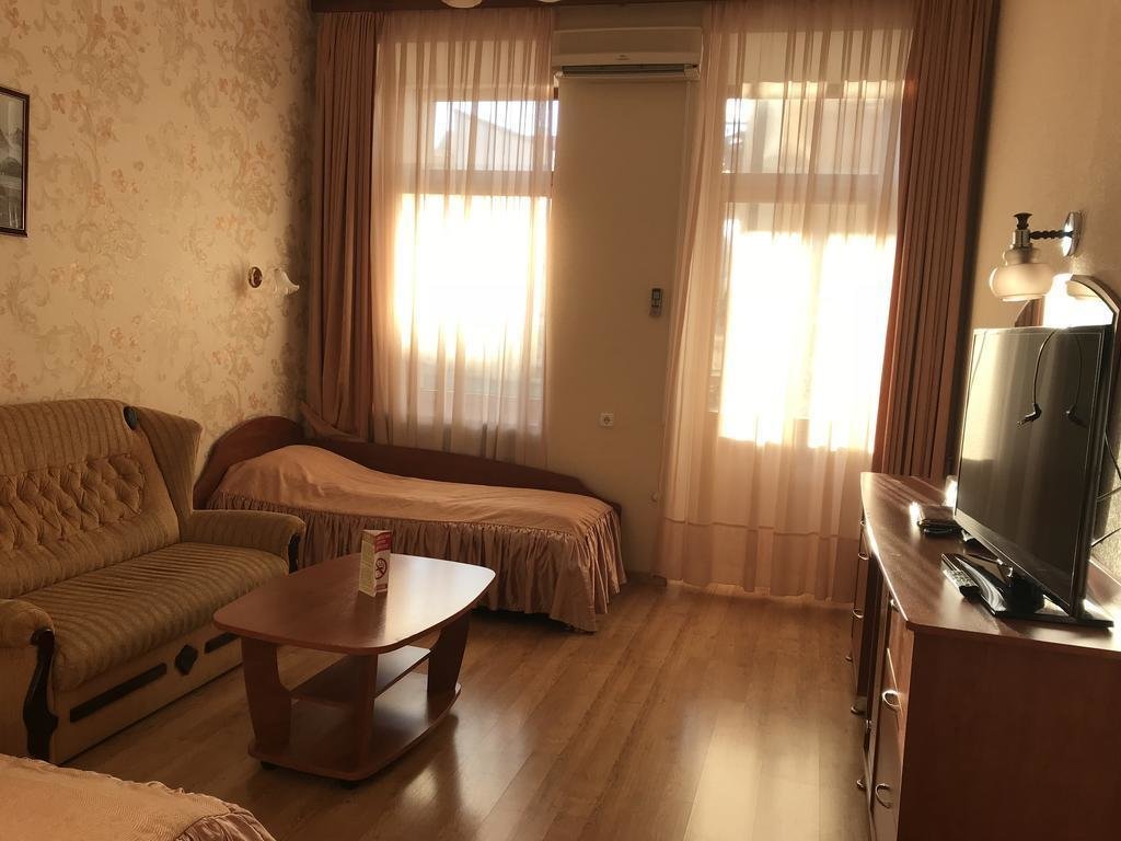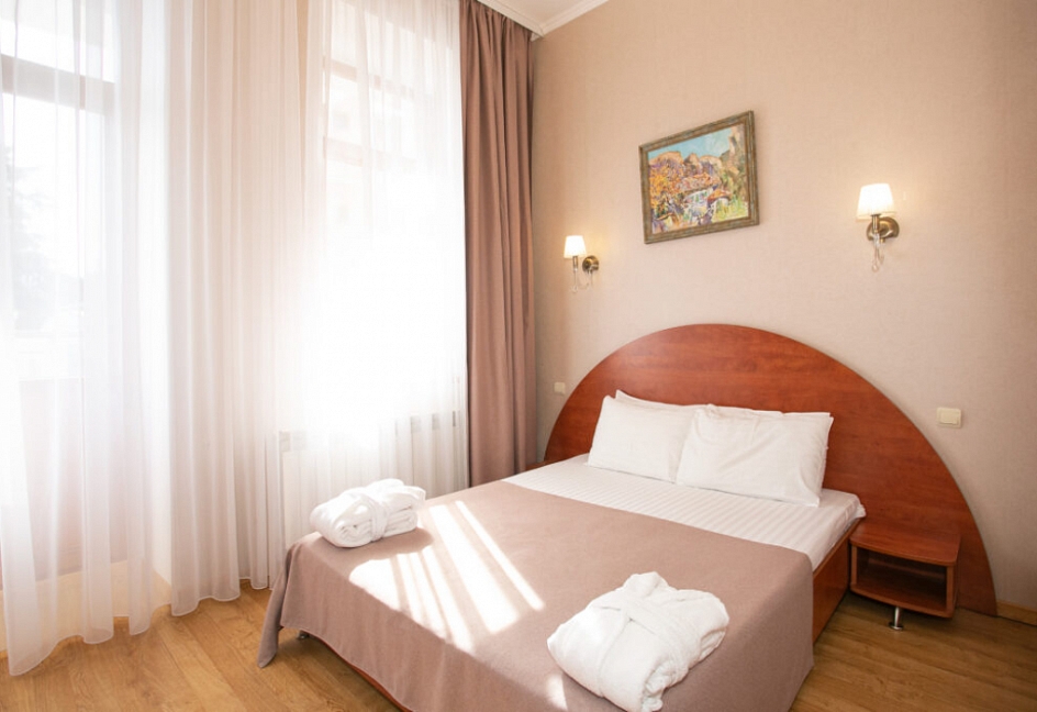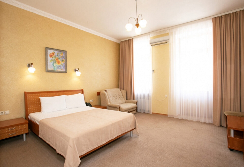 Четырех этажное здание лифтом не оснащено. Номерной фонд располагается со 2 по 4 этажи. В каждом номере санузел с ванной, телевизор, холодильник, кондиционер, телефон, wi-fi доступ в интернет.