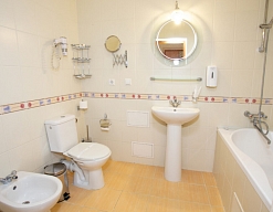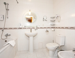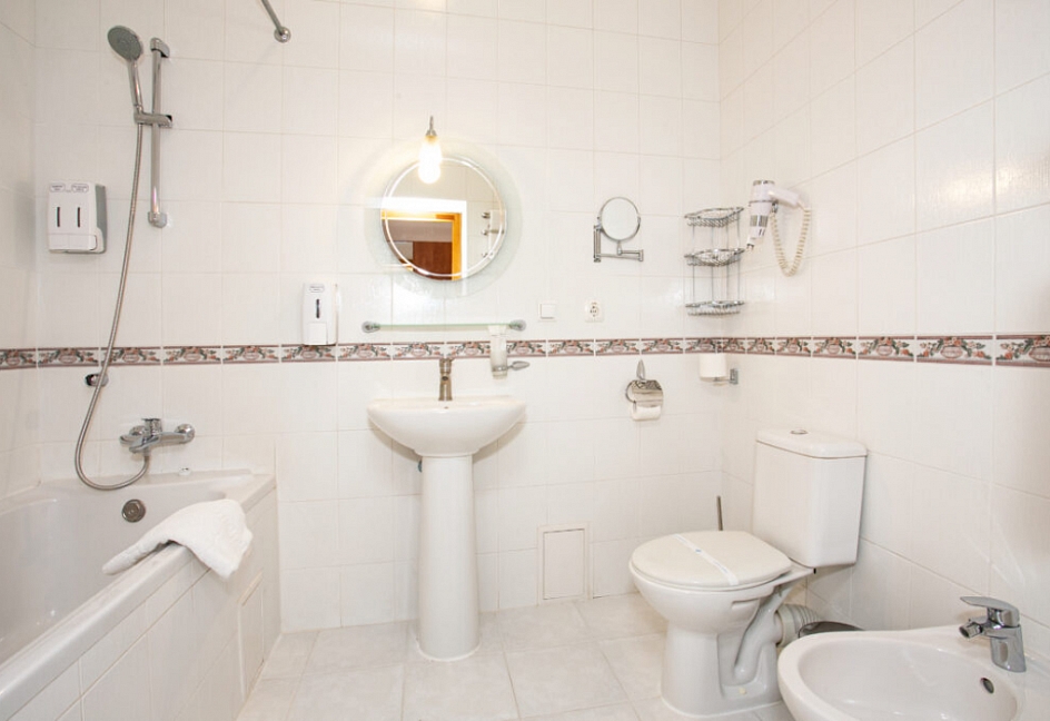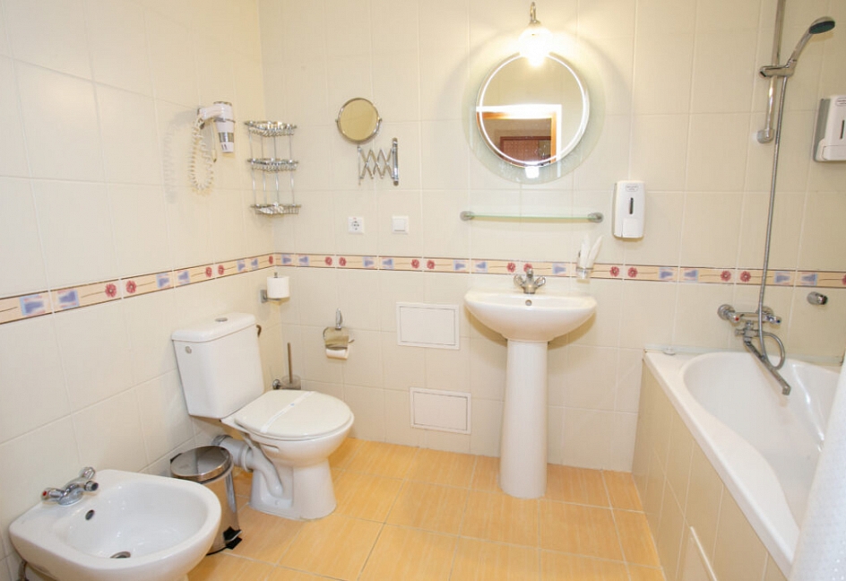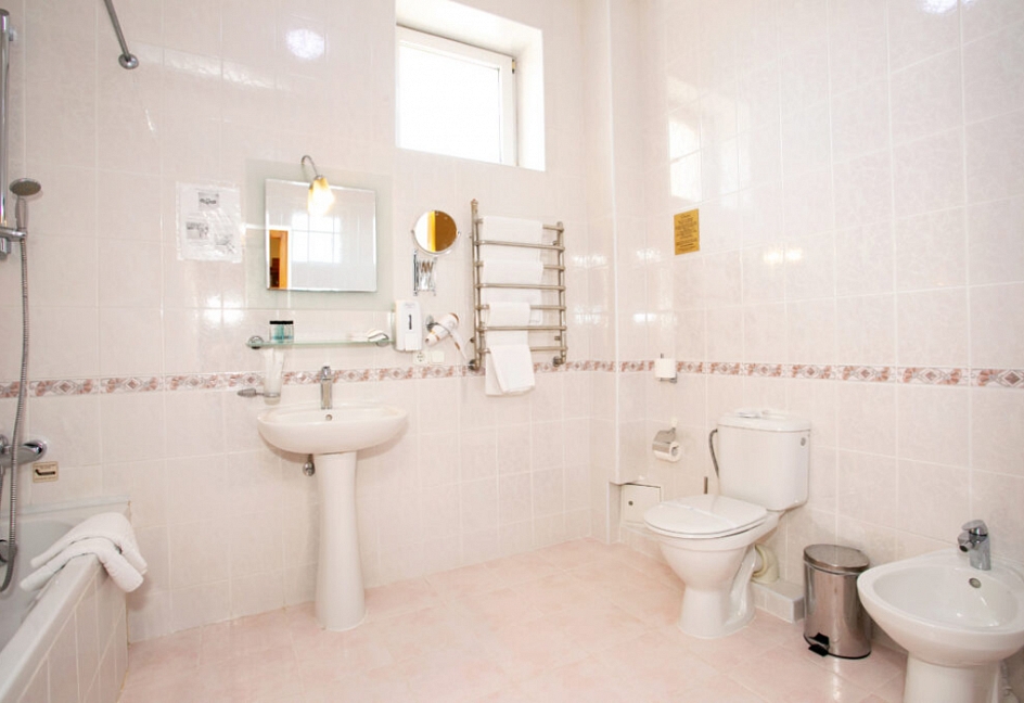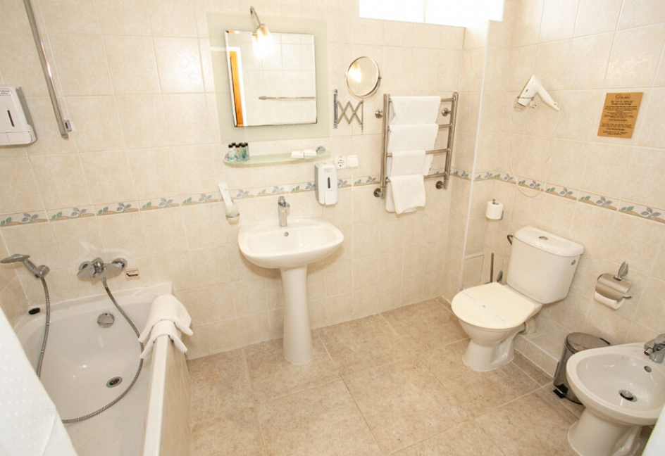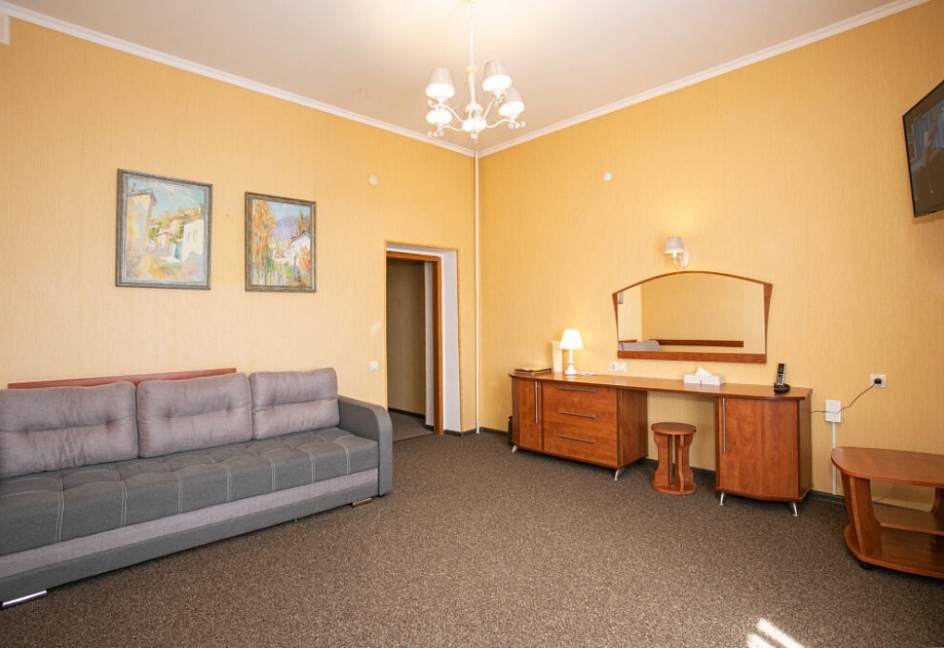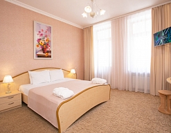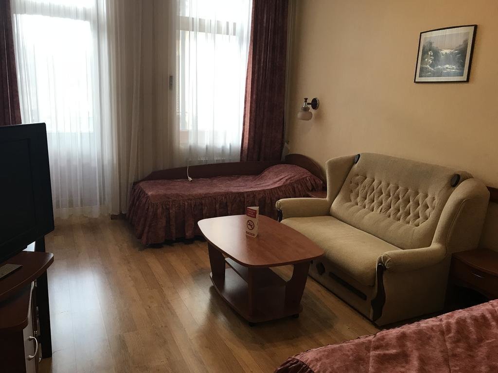 Четырех этажное здание лифтом не оснащено. Номерной фонд располагается со 2 по 4 этажи. В каждом номере санузел с ванной, телевизор, холодильник, кондиционер, телефон, wi-fi доступ в интернет.