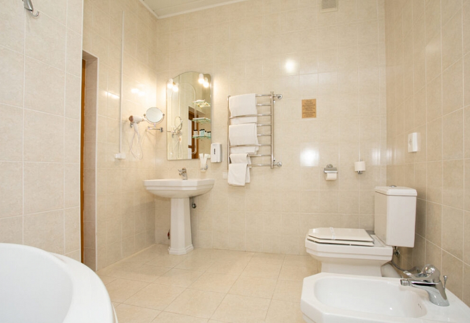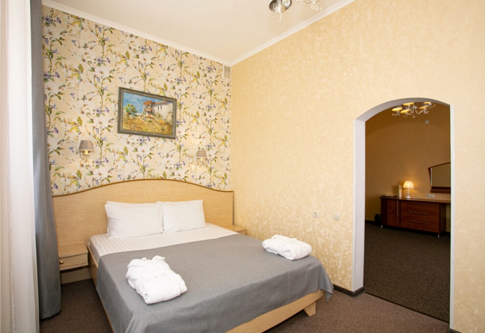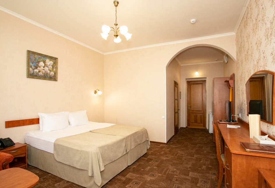 Номера с высокими потолками, создают ощущение простора, много света.