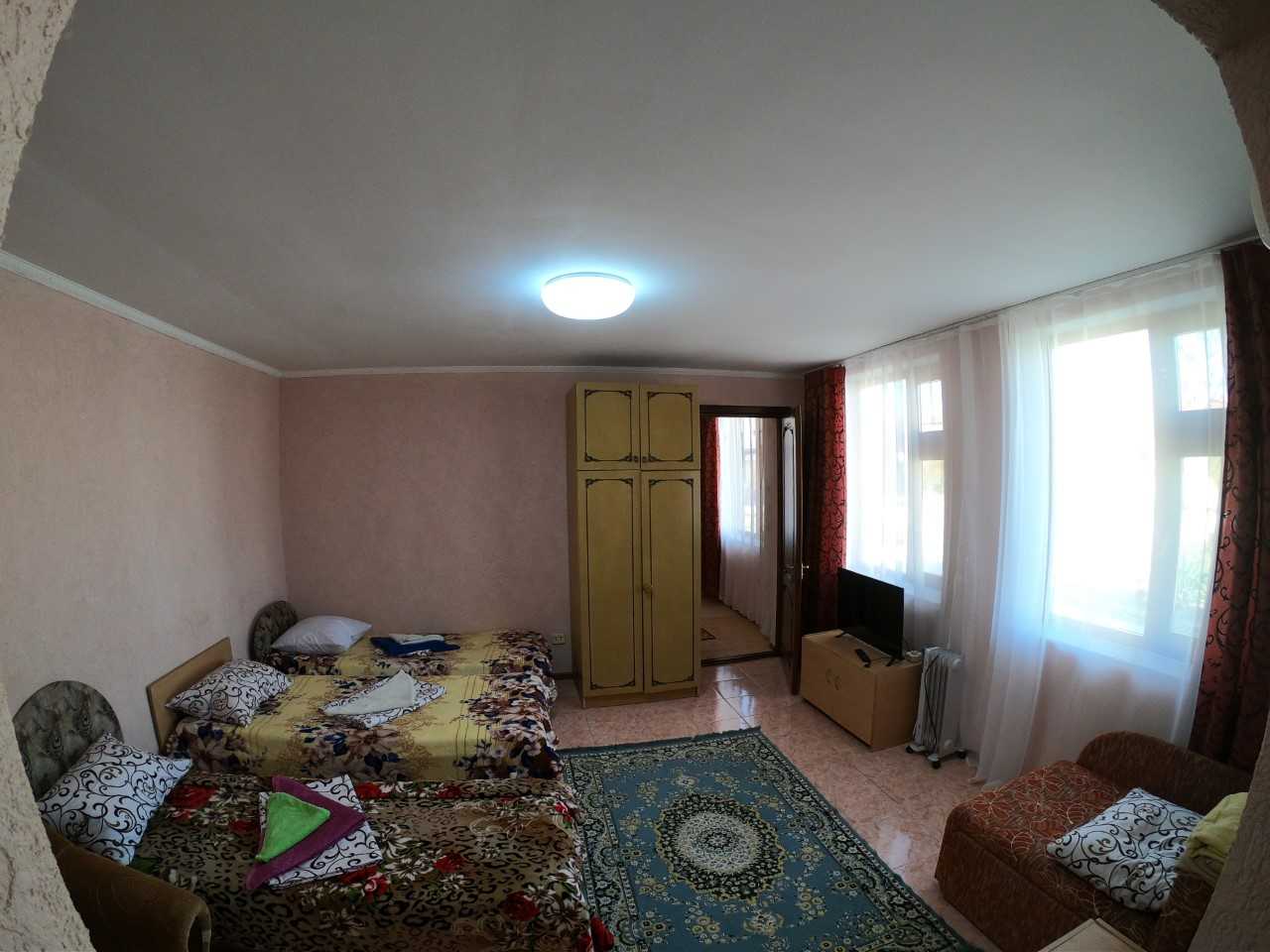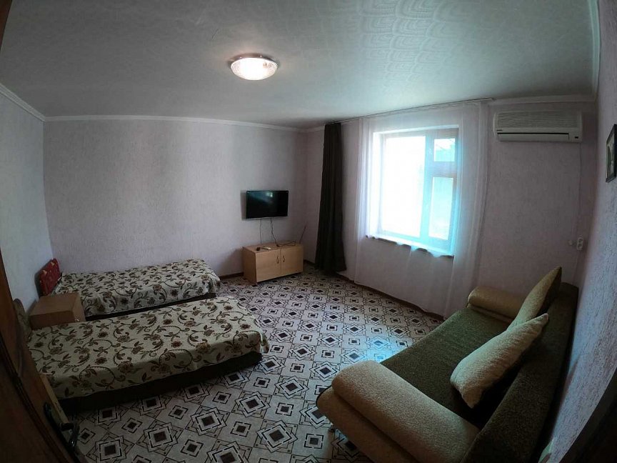 Удобное расположение от моря, тишина и спокойствие. Море чистое и народу не так много как на других курортах. Гостеприимные хозяева. Отличное место для отдыха с детьми. Территория дома отдыха огороженная, есть детская горка, батут и песочница.