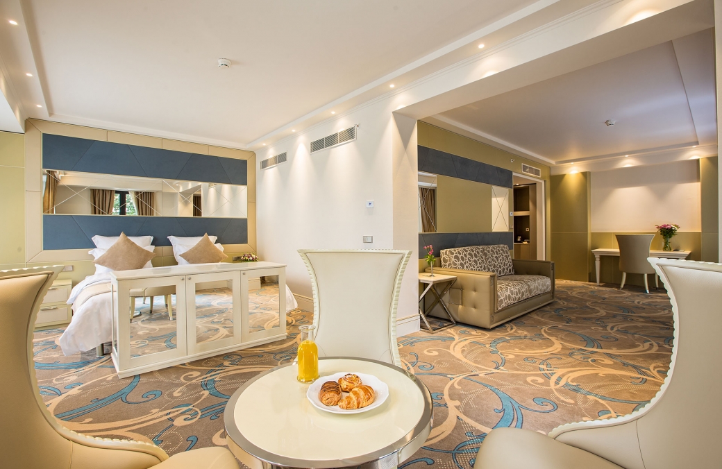 Номера отеля "Ambasadori" созданы, чтобы обеспечить ваш комфорт и удовлетворить самые взыскательные потребности. Они оформлены в современном стиле с элементами грузинской культуры и оборудованы всем необходимым, включая кондиционер, телевизор, мини-бар и бесплатный Wi-Fi. Вы сможете расслабиться и насладиться отличным видом на город из окна вашего номера.
