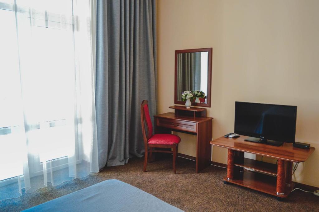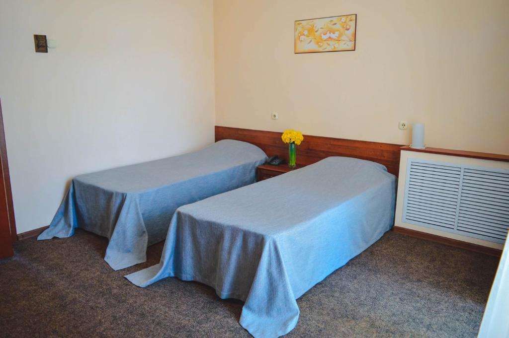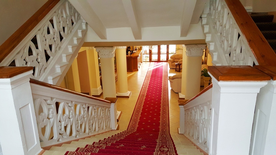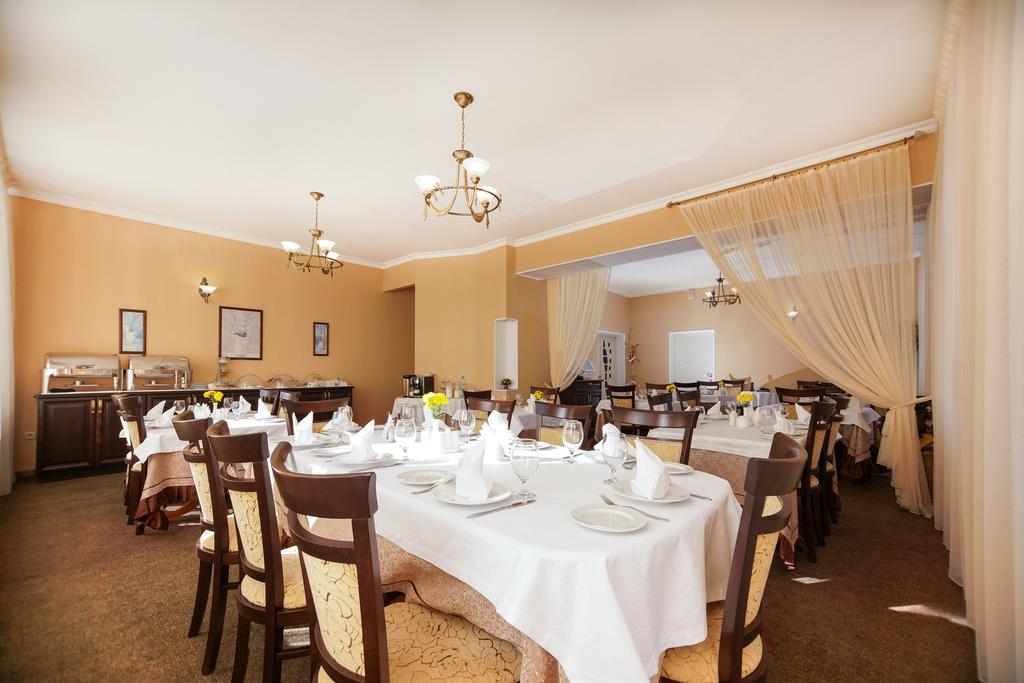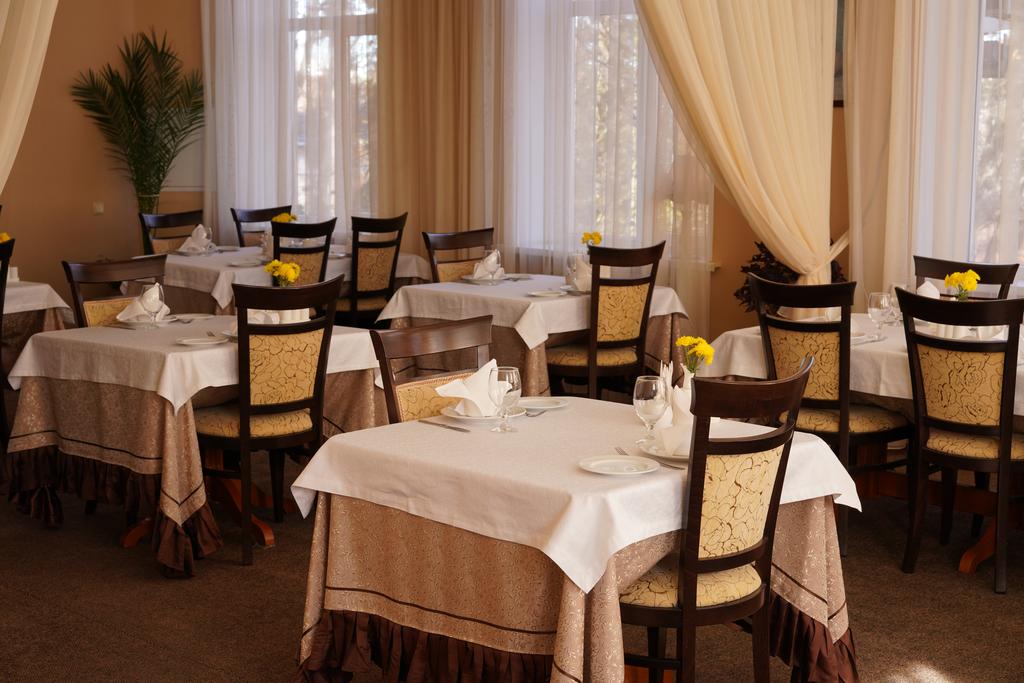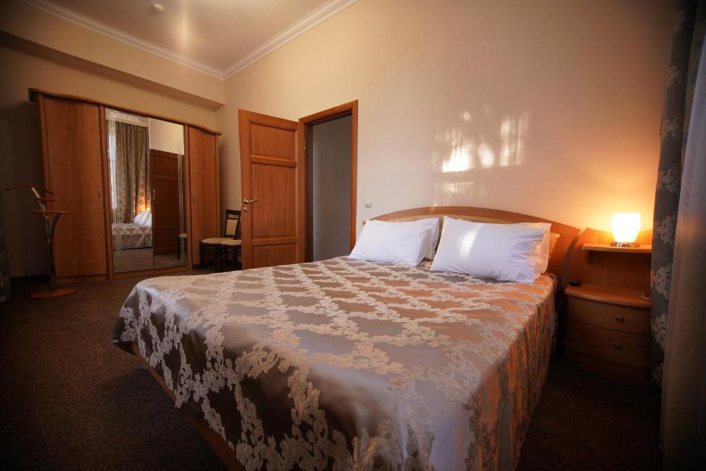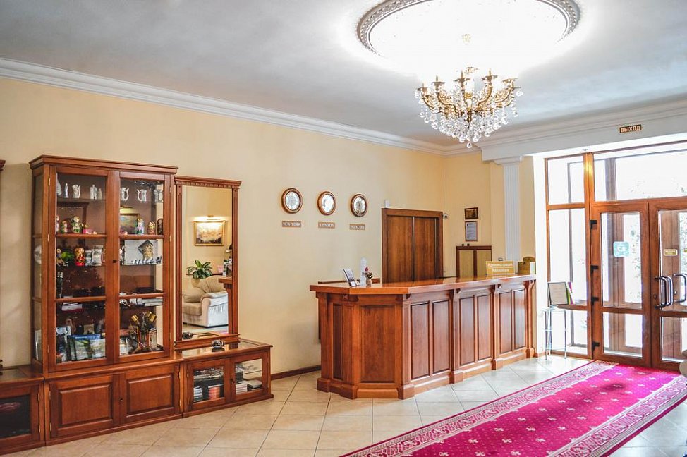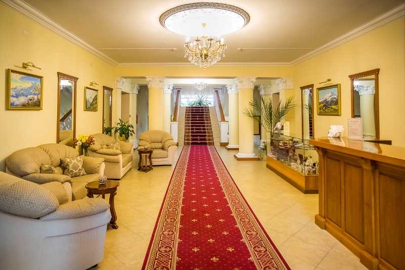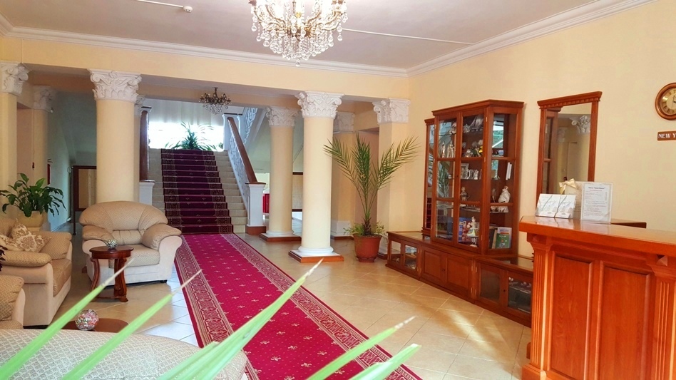 Трехэтажное здание отеля, фасад которого украшен белоснежными колоннами и балюстрадами, разместилось на закрытой озелененной территории. Отель предлагает гостям однокомнатные номера Первой категории и двухкомнатные Люксы. В номерах классический интерьер, выдержанный преимущественно в пастельных оттенках, везде имеется ванная комната с душем, качественный мебельный гарнитур, телевизор. Номера Люкс оснащены дополнительной бытовой техникой.