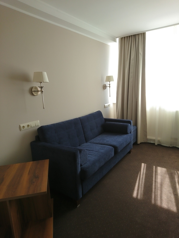 Отличная гостиница, очень понравилась, номер большой, ванная чистая современная. Удаление от центра и достопримечательностей легко компенсируется такси, цена которого 80-100 рублей. Рядом есть остановка "Сельва", где за 50 руб на ласточке можно доехать до Светлогорска, потом за 60 рублей до Зеленоградска и потом оттуда можно на ласточке вернуться в сам Калининград.