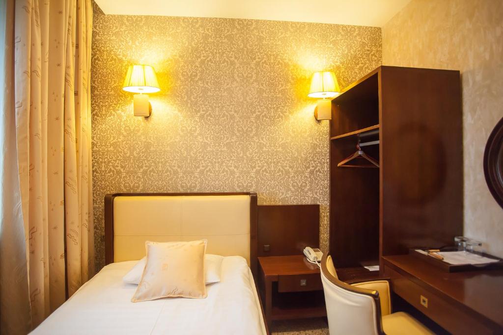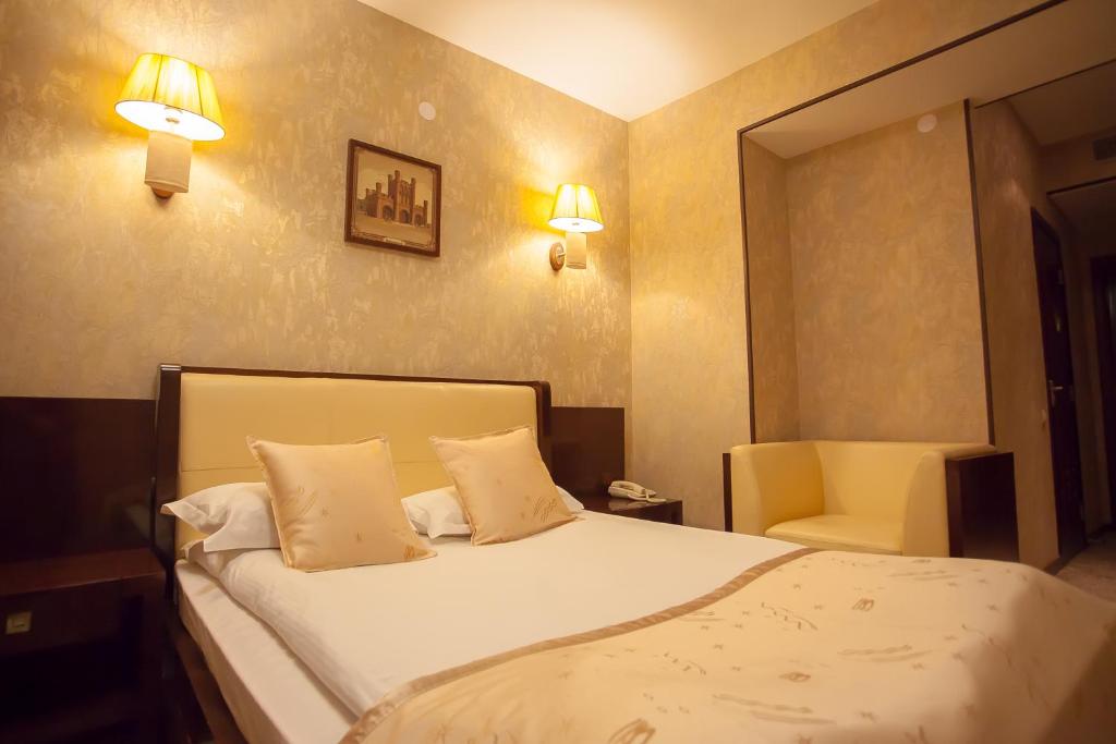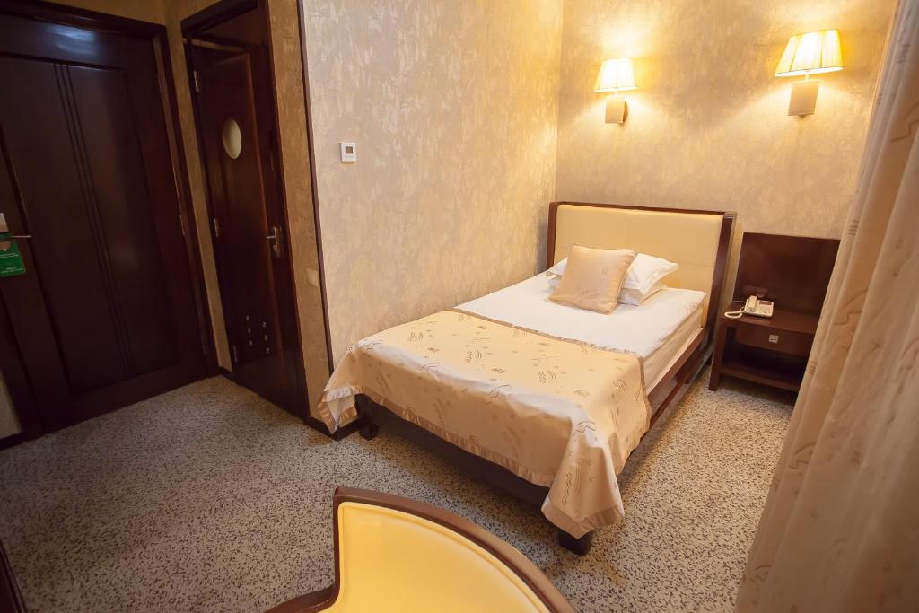 Номер достаточно чистый, свежее постельное белье, есть умывальные принадлежности, тапочки. Отдыхали с малышом, поэтому была коляска, подъём коляски осуществлялся без проблем (есть въезды/заезды, лифт- может быть кому-то эта информация пригодится).