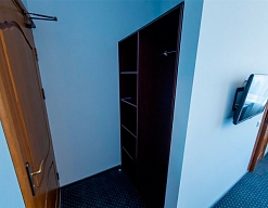 вешалка, зеркало, ковровое покрытие, кровати односпальные, прикроватные тумбочки, стол, стул, шкаф