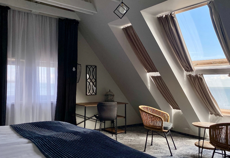 уютное размещение в номерах на берегу Куршского залива: на Ваш выбор – «стандарт», «семейный», «джуниор сьют», «люкс» и апартаменты;