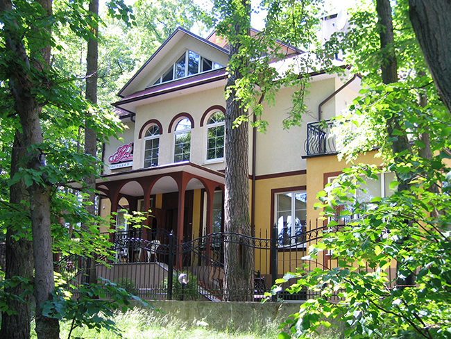 Самолетом до аэропорта Храброво (г. Калининград), далее на автобусе в направлении: «Автовокзал Калининград» до остановки «Гостиница Калининград», далее перейти на противоположную сторону на другую остановку «Гостиница Калининград», далее на автобусе в направлении: «Светлогорск-2» до остановки «Светлогорск, ул. Карла Маркса», далее пешком 510 м.
