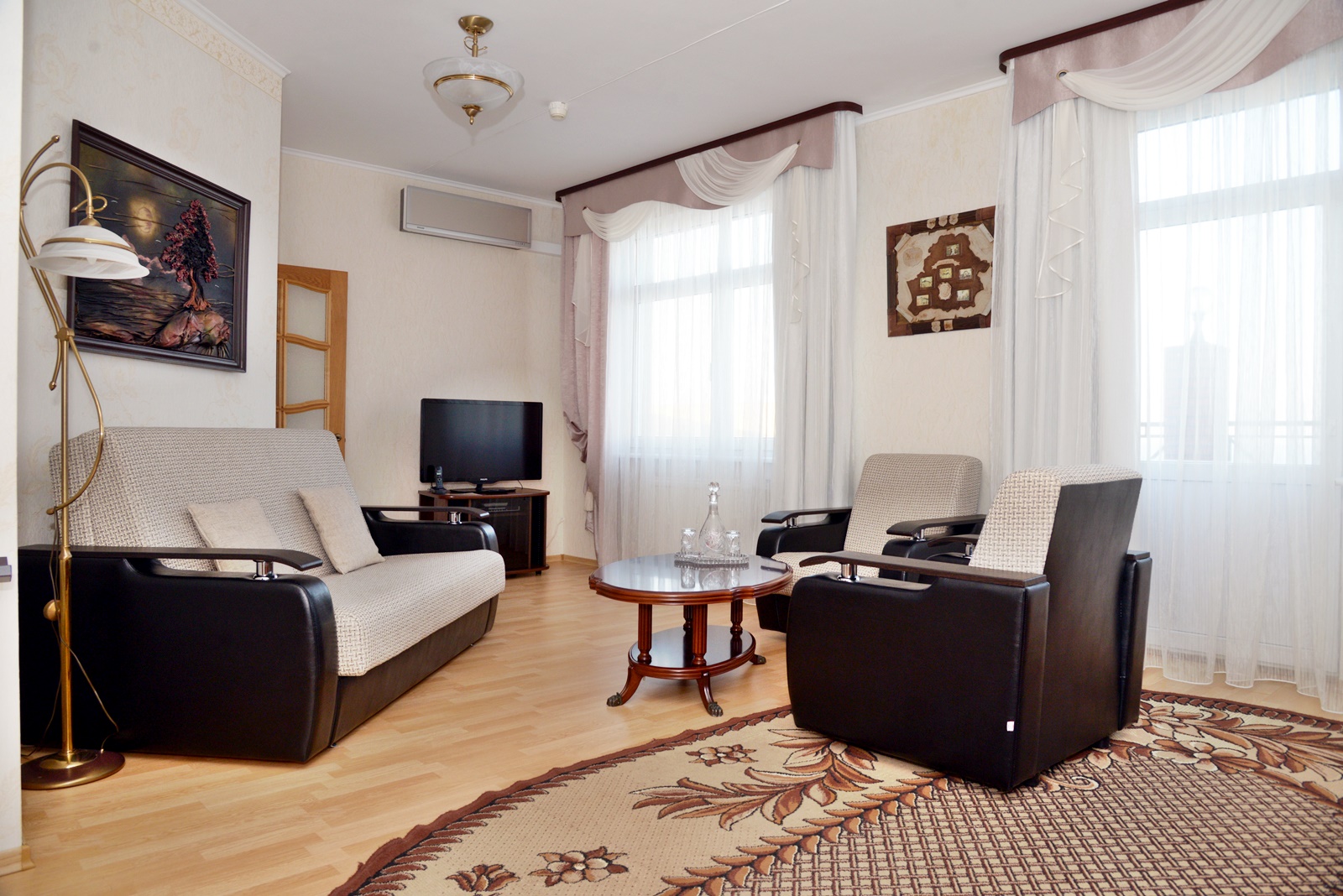 кондиционер, сейф, телевизор ЖК, телефон, холодильник, чайный набор посуды