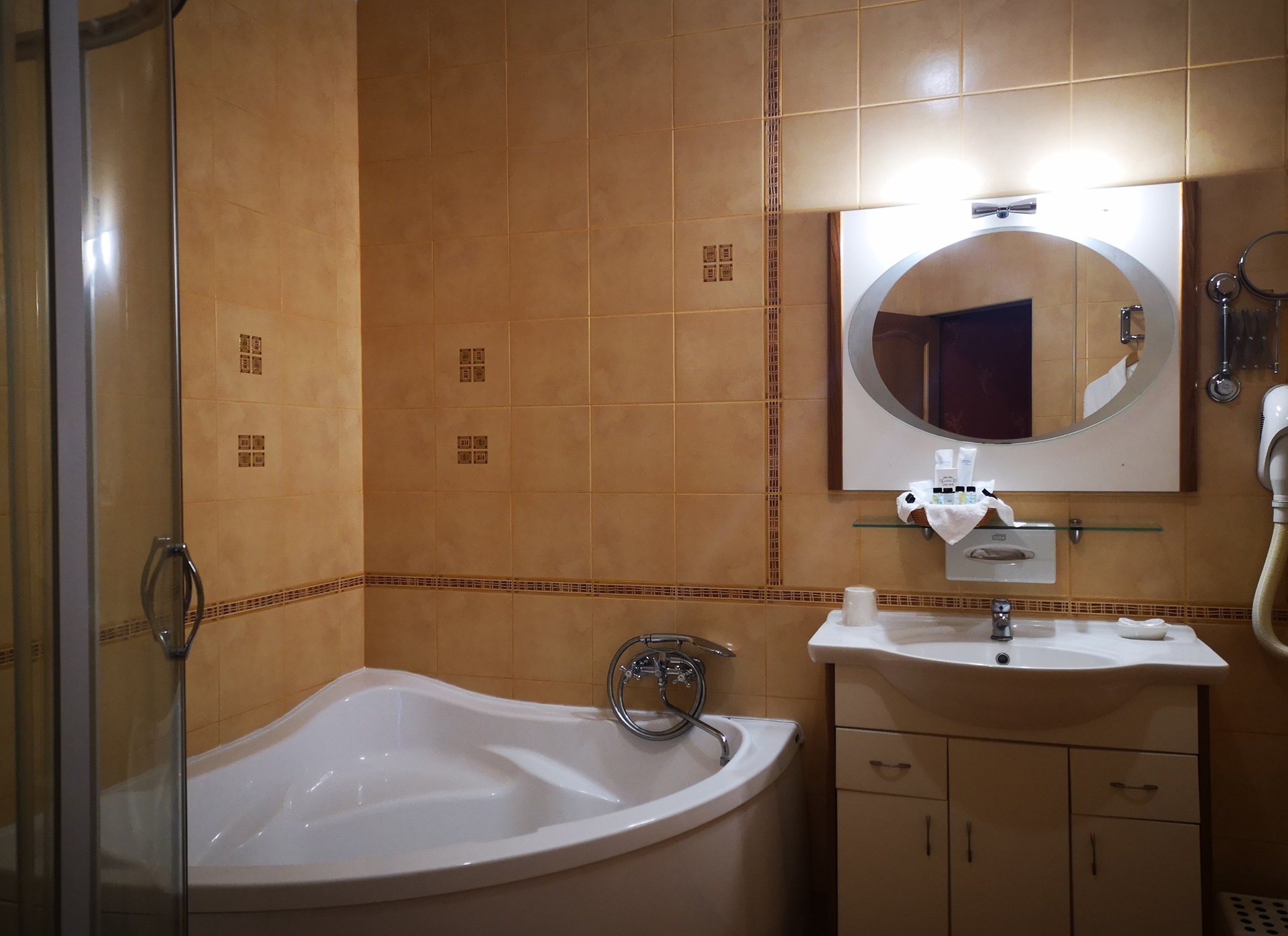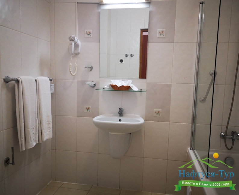 с душем, туалетные принадлежности, фен