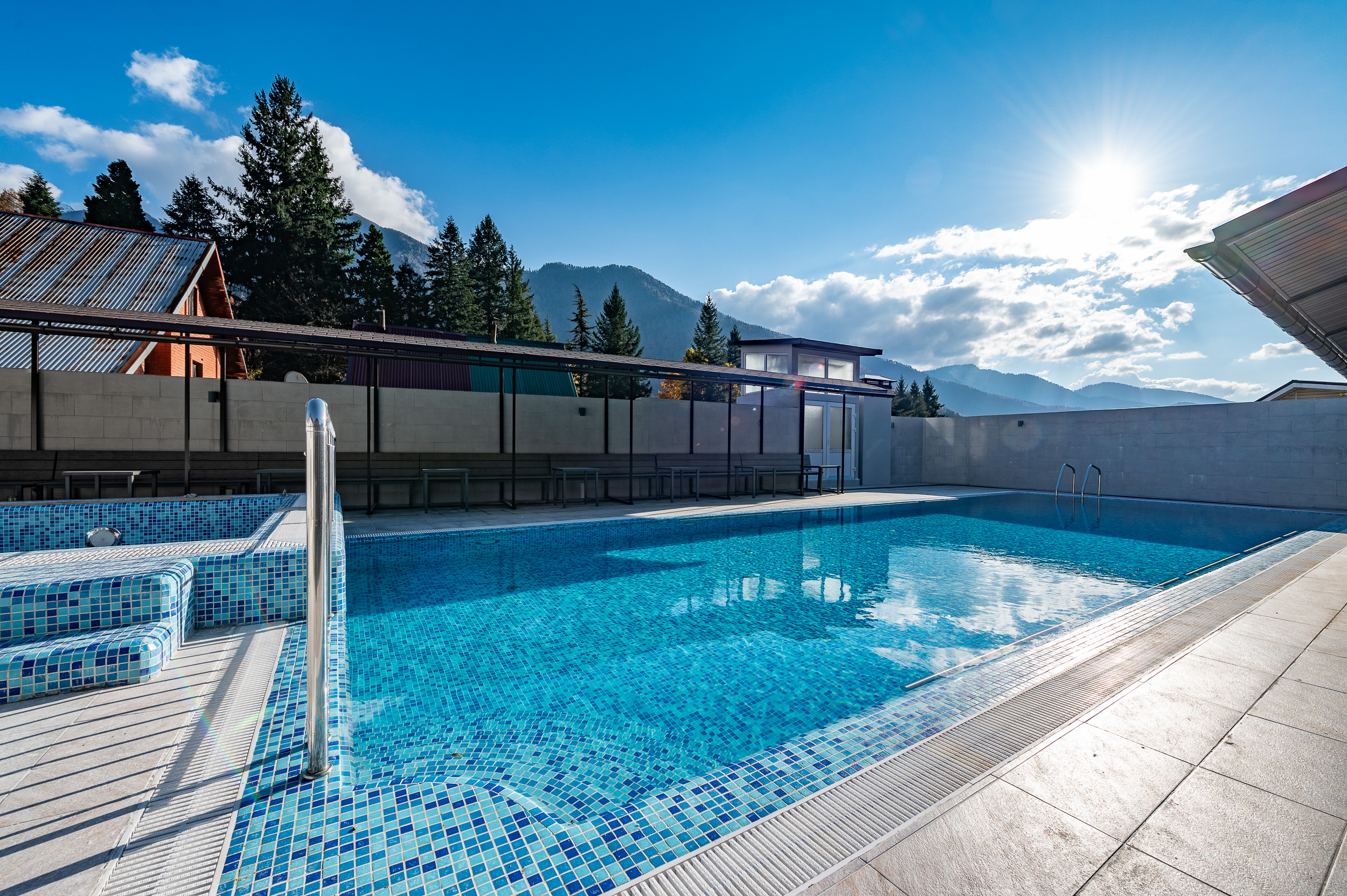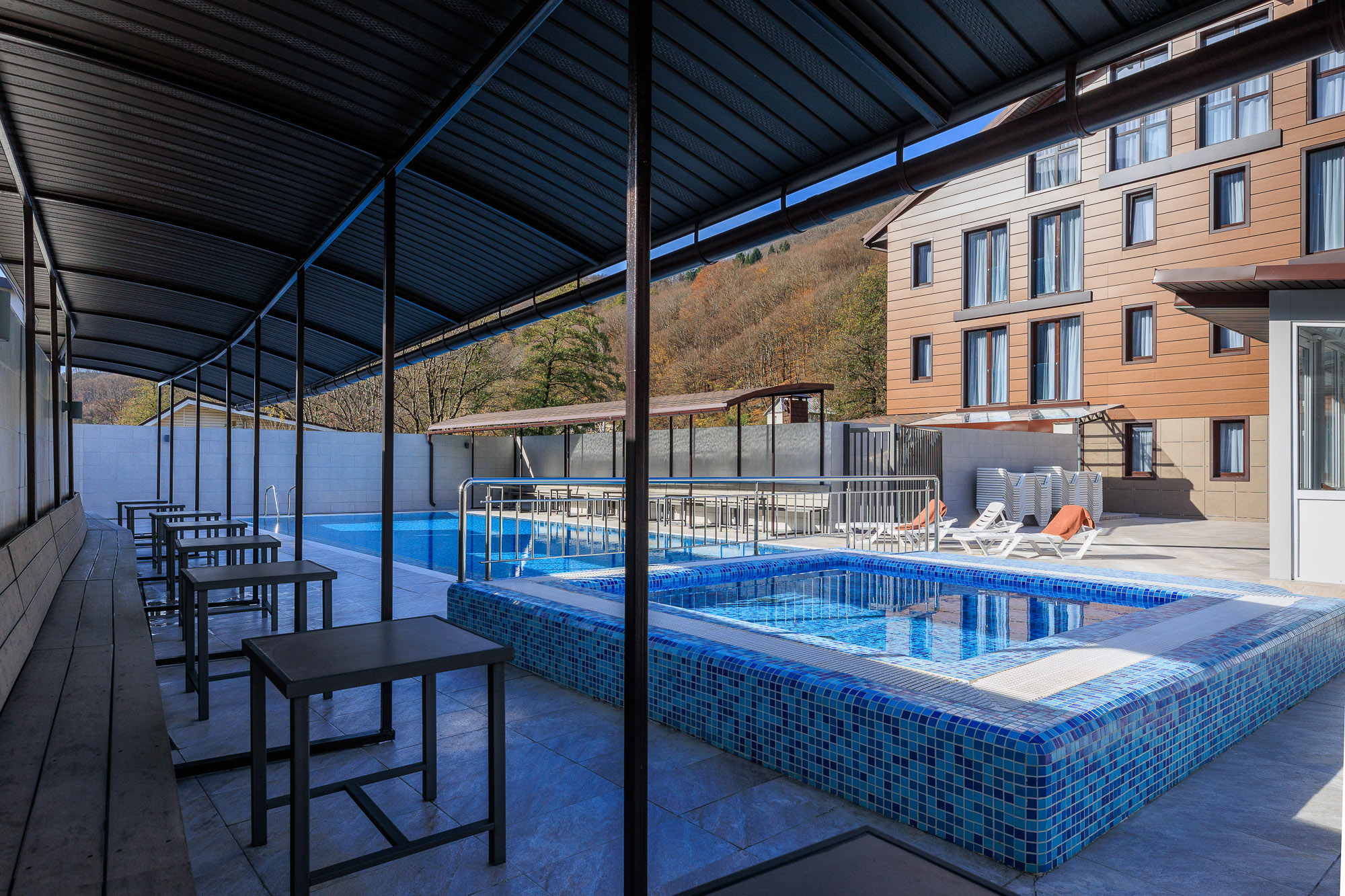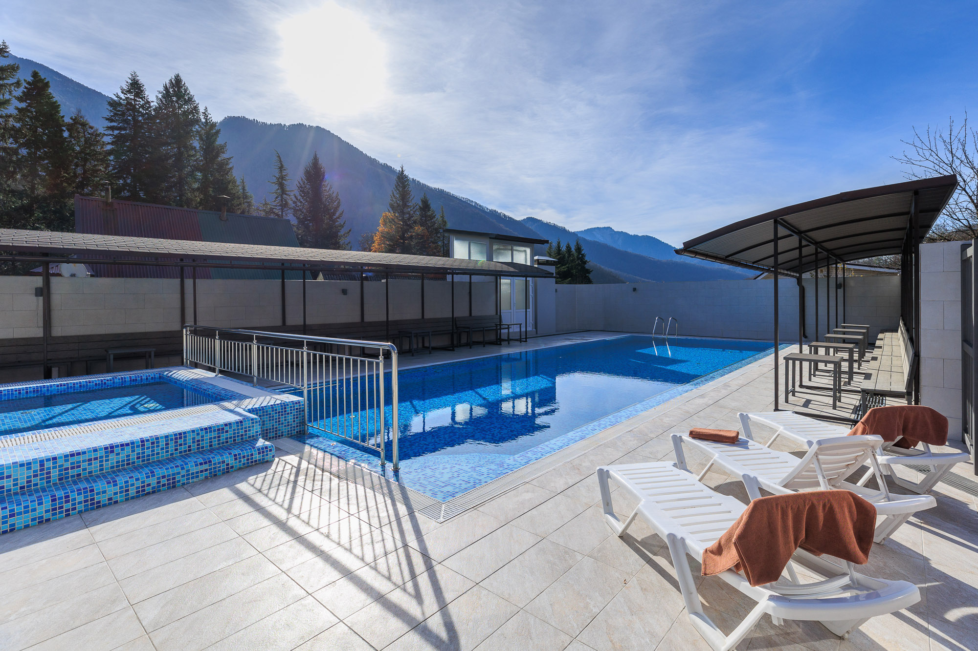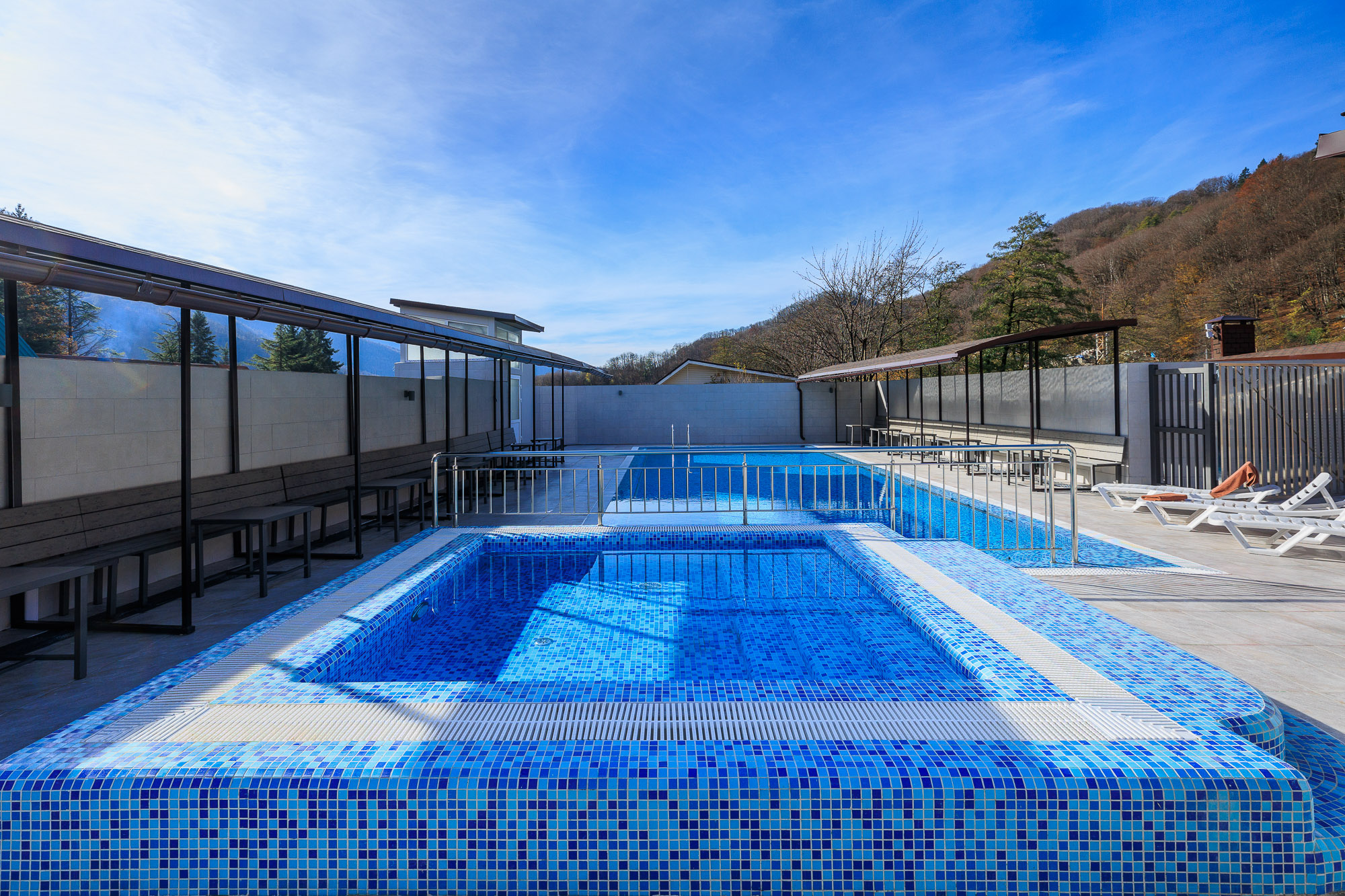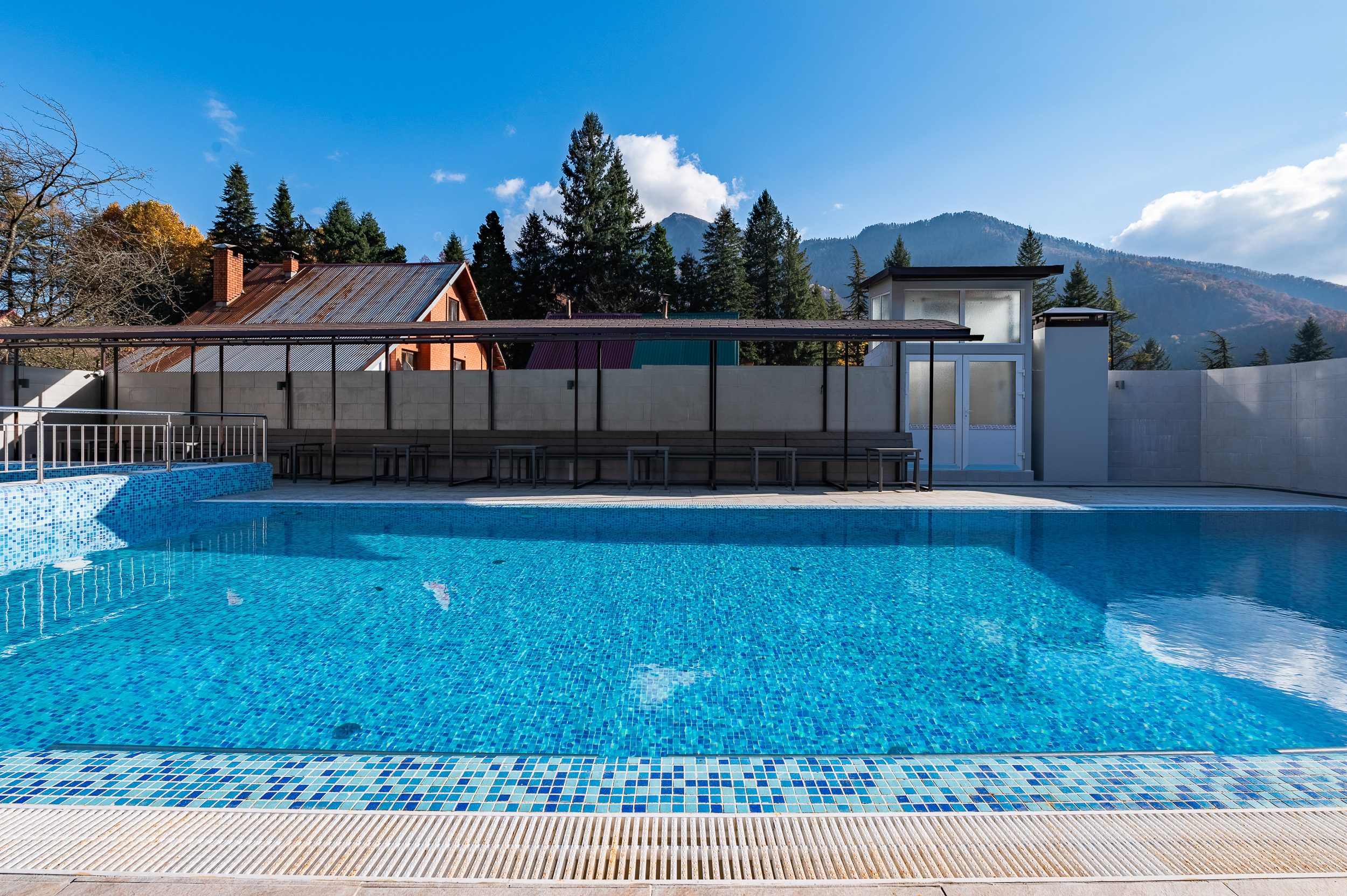 • Бассейн открытый, 20х10, вода пресная, шезлонги, зонты