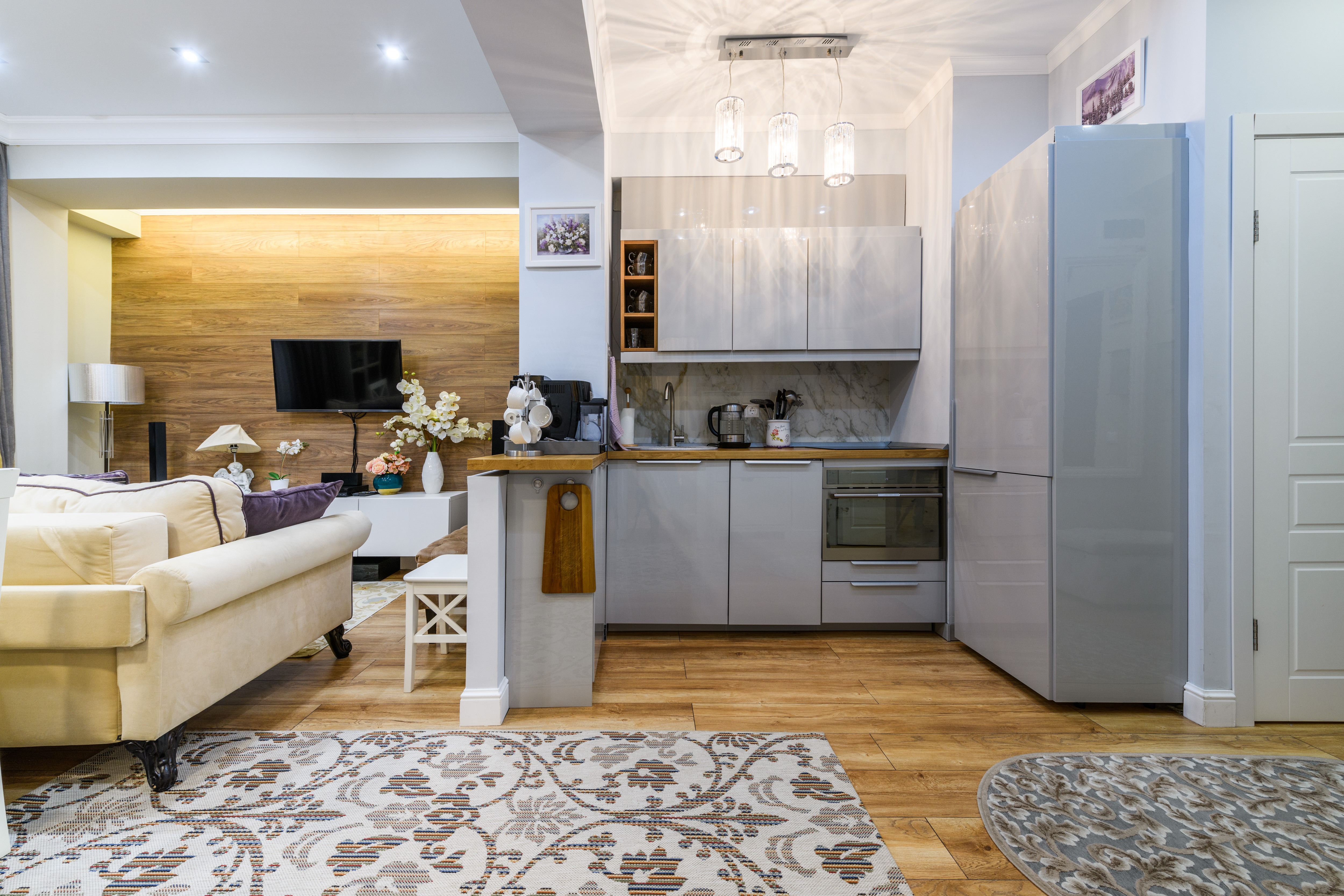 микроволновая печь, набор посуды, плита электрическая, стиральная машина, телевизор ЖК, холодильник, чайный набор посуды, электрочайник