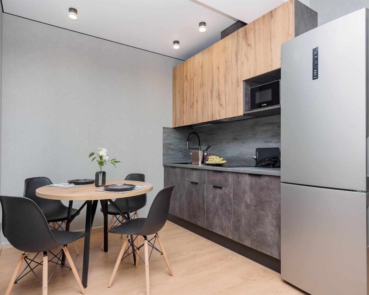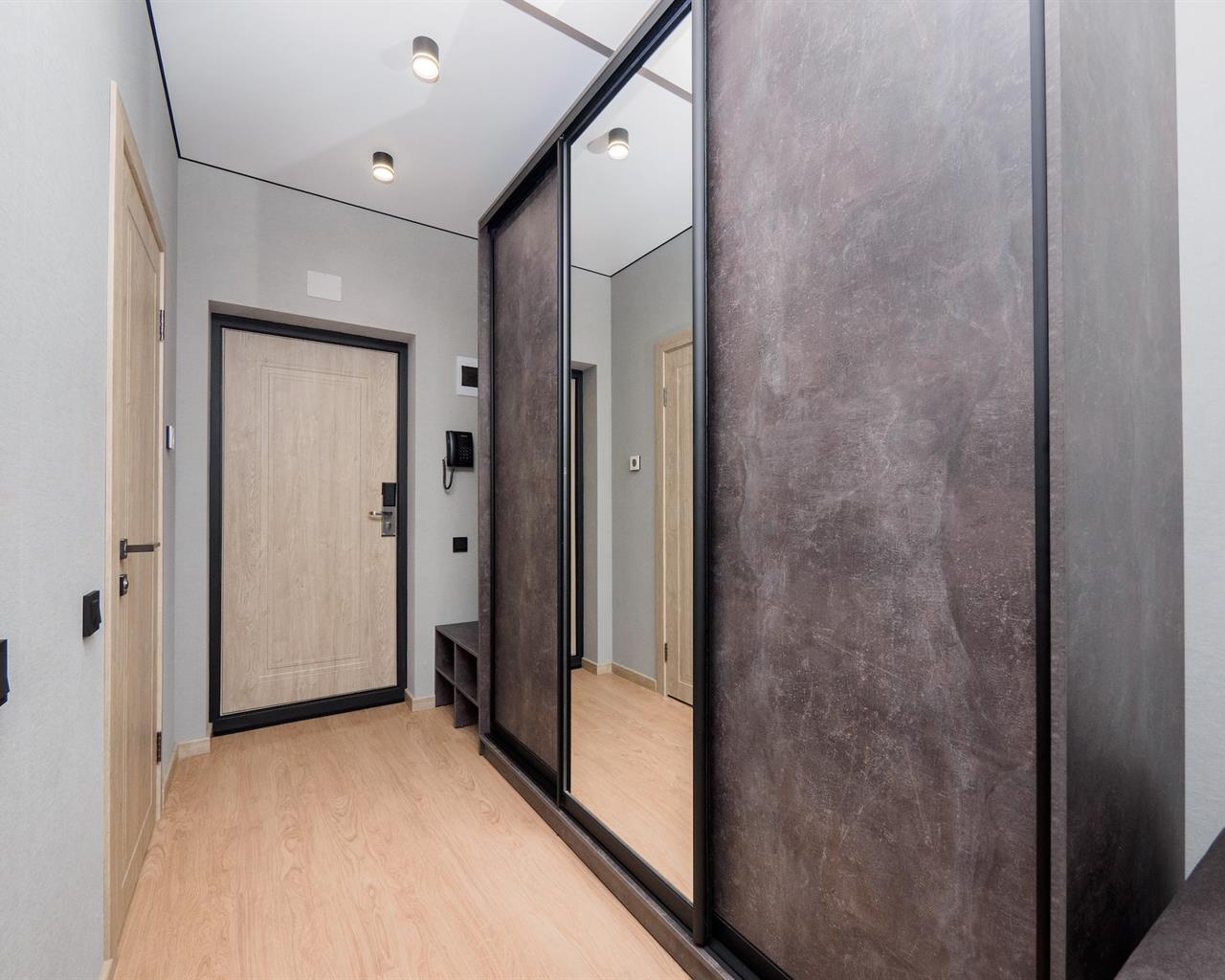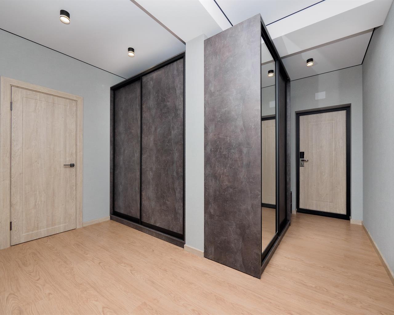 диван раскладной, кровать двуспальная, прикроватные тумбочки, стол, стулья, шкаф-купе