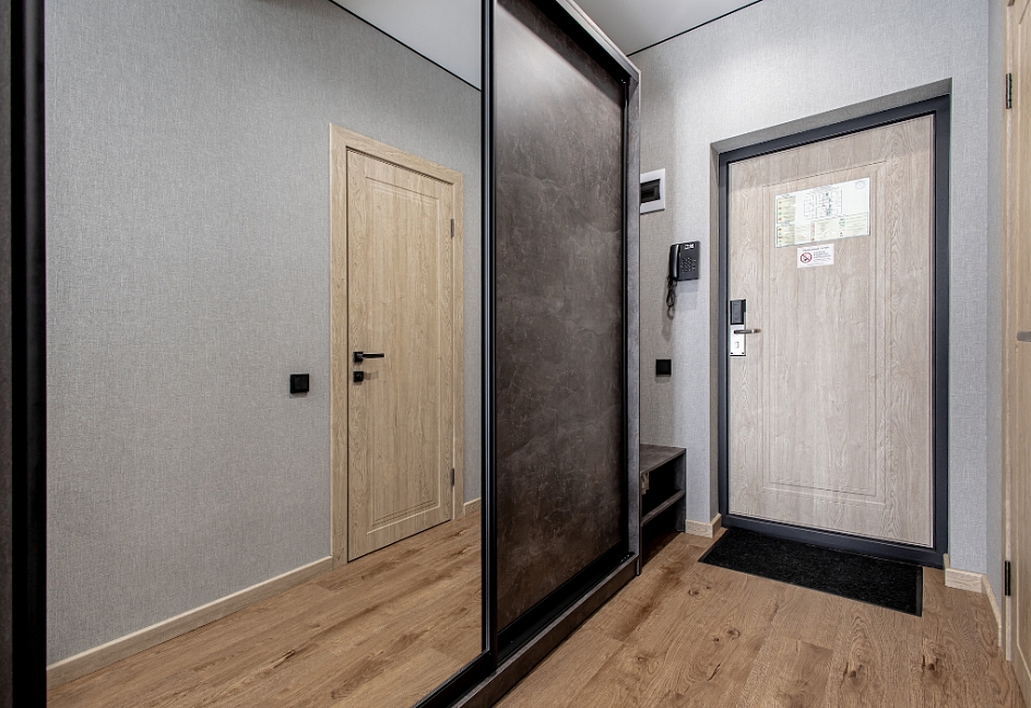 диван раскладной, кровать двуспальная, прикроватные столики, стол, стулья, шкаф-купе