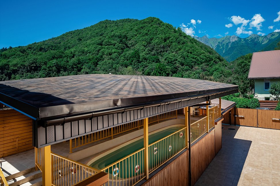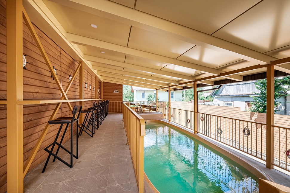Комфортный уютный отель на 14 номера. Для гостей отеля бесплатно доступен тёплый подогреваемый до 30℃ бассейн. Финская сауна, настольный тенис, мангал.