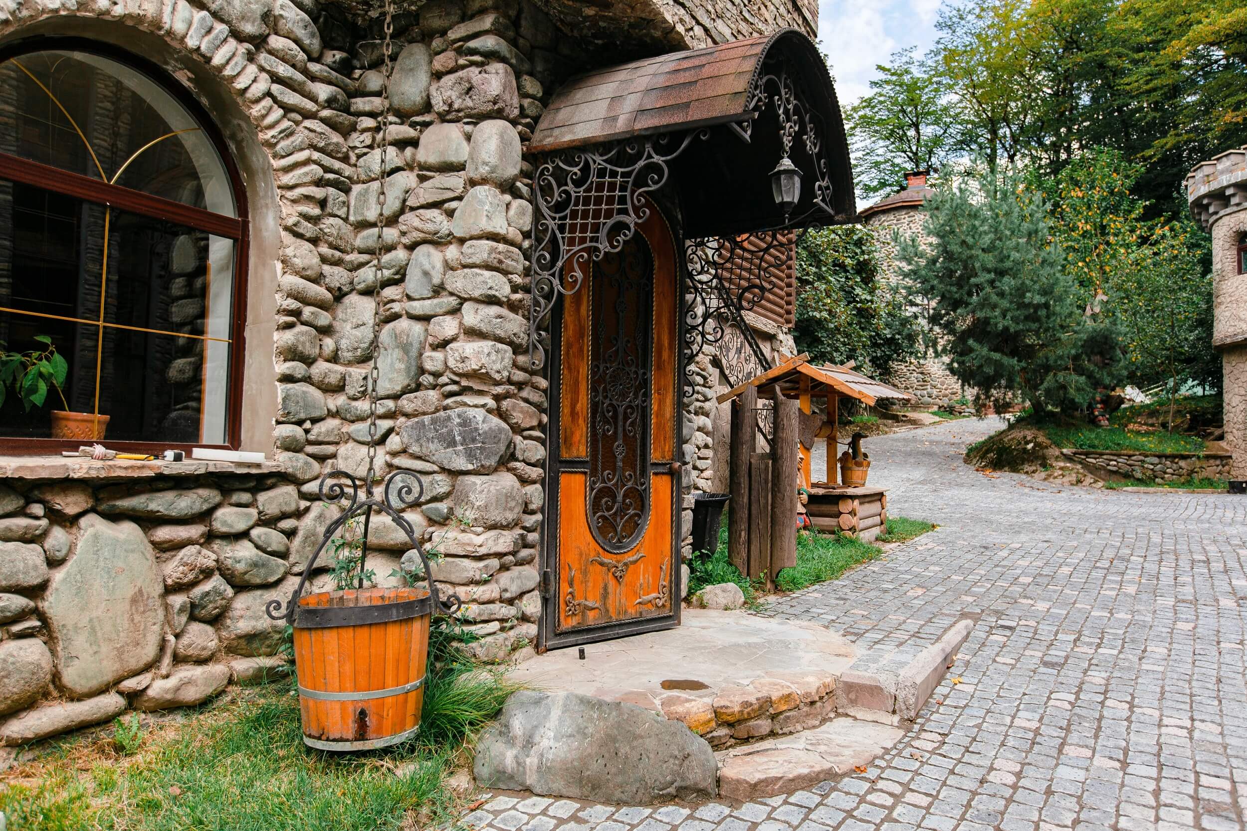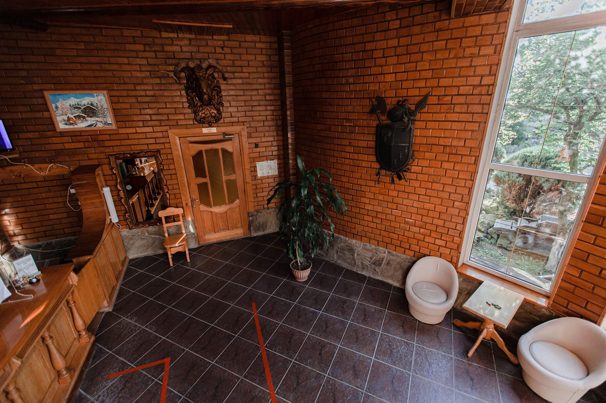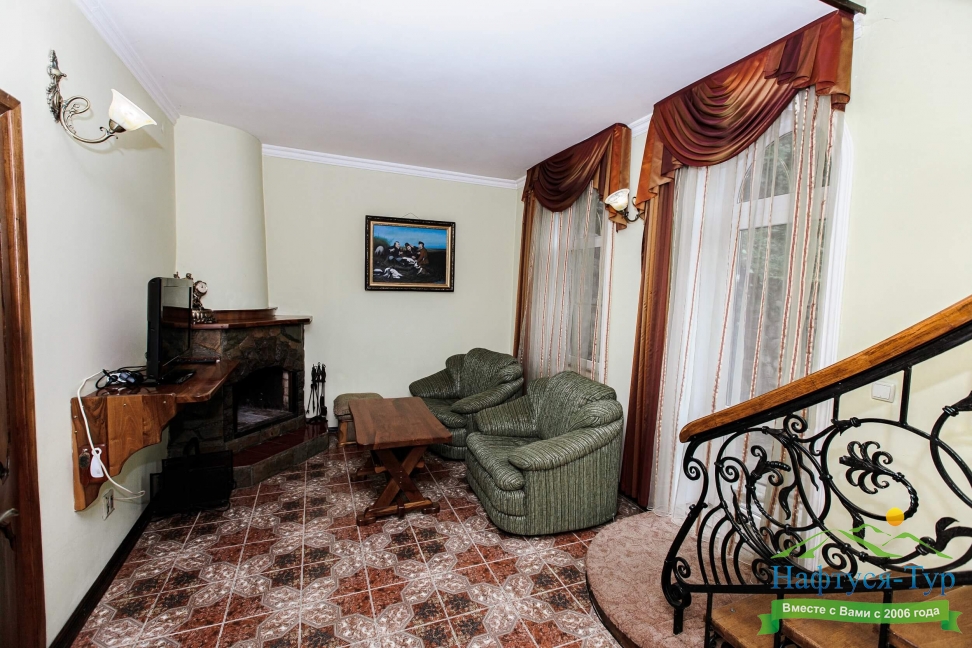 камин, сейф, телевизор, холодильник, чайный набор посуды, электрочайник