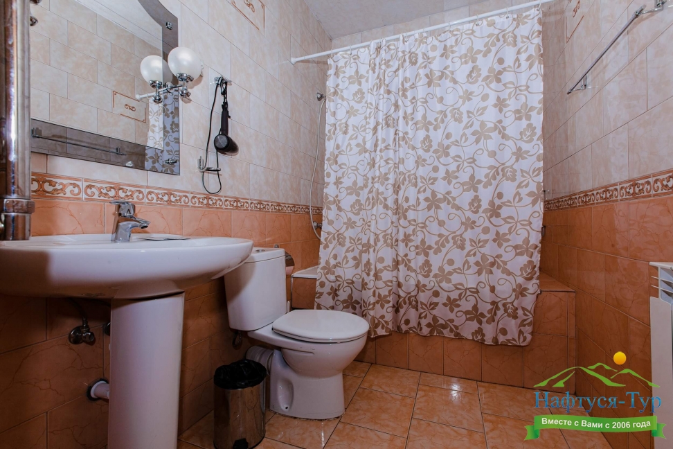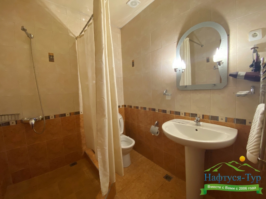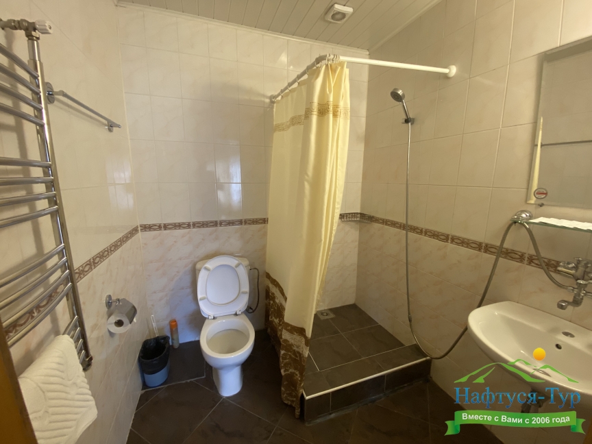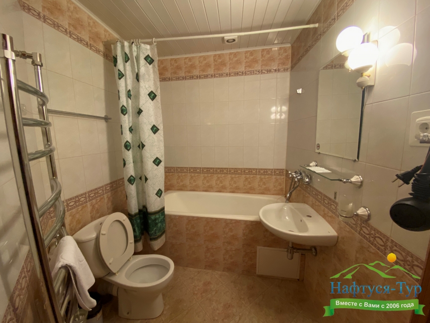 2 санузла, с ванной, тапочки, туалетные принадлежности, фен