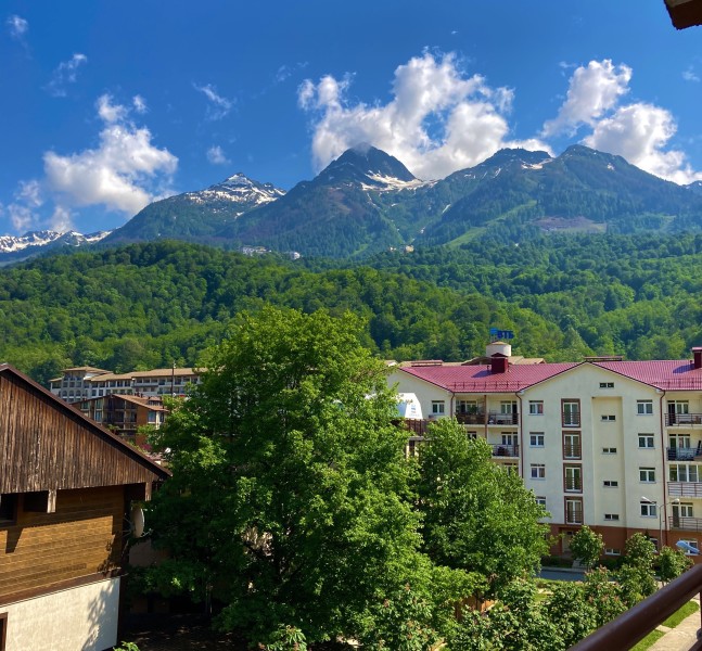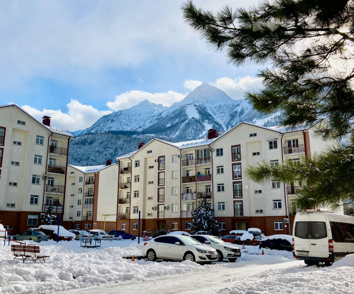 Поездом до ж/д вокзала Роза Хутор, далее на автобусе №105,105с,535,163,535э,А,Б до остановки «Мегафон», затем пройти 530 м до до апартаментов.