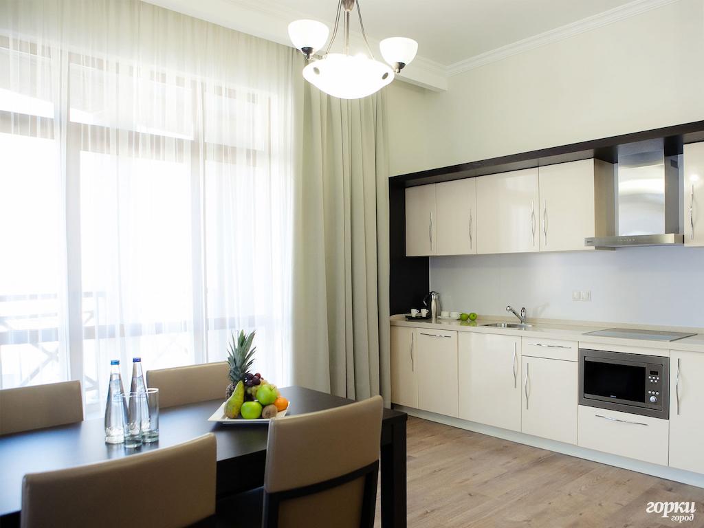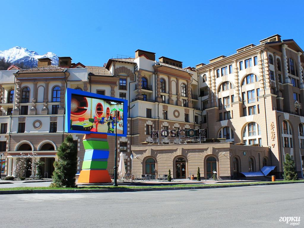 · Сеть Горки Город вся в целом отличная, месторасположение апартаментов супер: рядом тц, продуктовые магазины, фуникулер, ресепшн, множество кафе и ресторанов, прокат оборудования (лыжи/сноуборд).