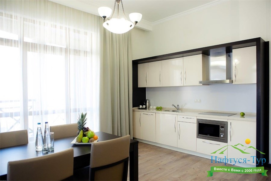 · Вид из номера просто шикарный! Мы жили на 5 этаже в номере для большой компании(весь этаж занимал наш номер), три 2х местных комнаты, 3 сан узла в каждой комнате - очень удобно! Особенно если едут 3 девочки) огромная гостиная с кухней где мы по вечерам собирались и вместе готовили ужин.