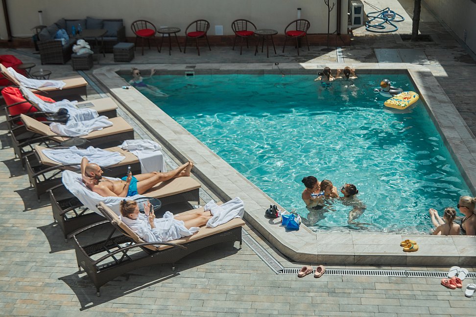 Поездом до ж/д вокзала Адлер, далее электричкой в направлении: «Роза Хутор» до станции «Эсто-Садок», далее 340 м до остановки «Вокзал Эсто-Садок», далее автобусом №535, 105с в направлении: «Роза Хутор» до остановки «ТРЦ Горки Молл», далее 450 м пешком до отеля.