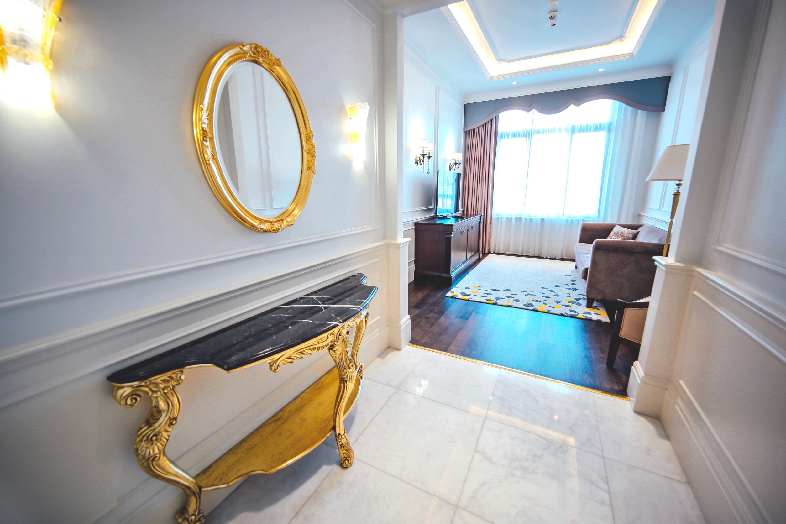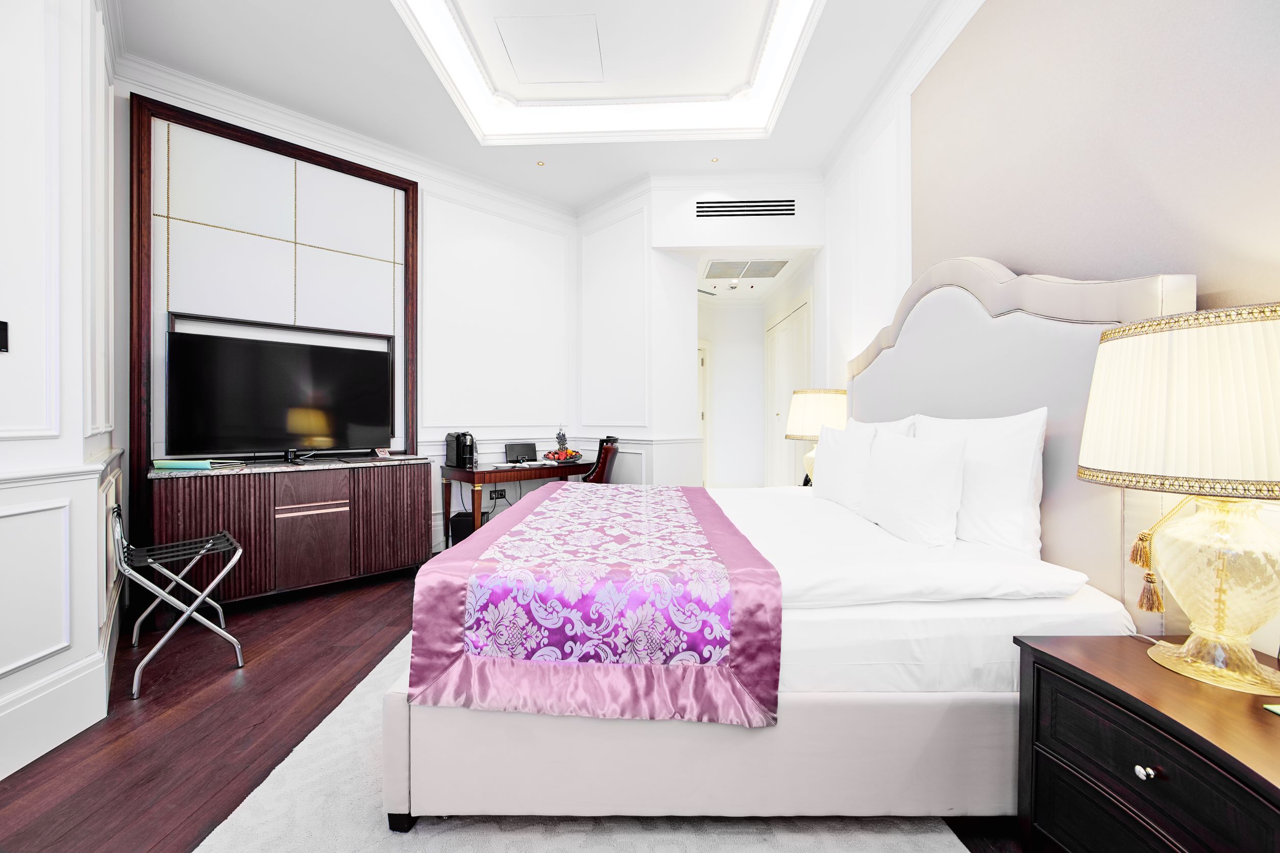Номер выдержан в едином стиле, все продумано. Если капсульная кофемашина, вкусный чай, вода. Отличая косметика в ванной.