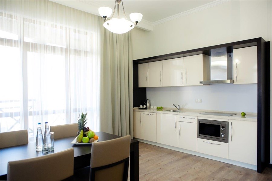 Понравилось · Внешний вид номера превзошел ожидания по сравнению с фото на сайте - хорошая спальня с широкой удобной кроватью, большой балкон с видом на горы и красивые крыши соседних домов, небольшая, но оснащенная всем необходимым кухней с небольшой лаунж зоной (диванчик с телевизором).