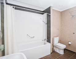 с ванной/душем, тапочки, туалетные принадлежности, фен, халат