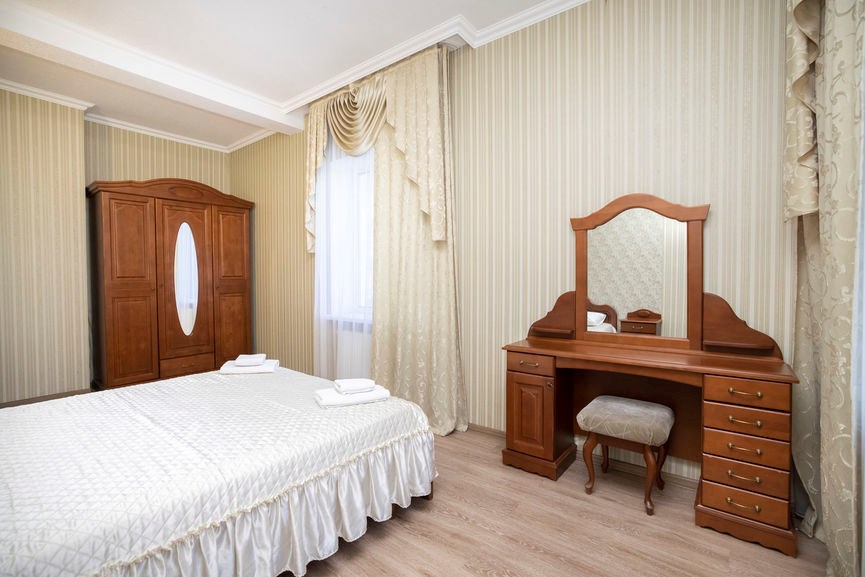 вешалка, зеркало, кровати односпальные /одна двуспальная кровать, стол, стул, шкаф