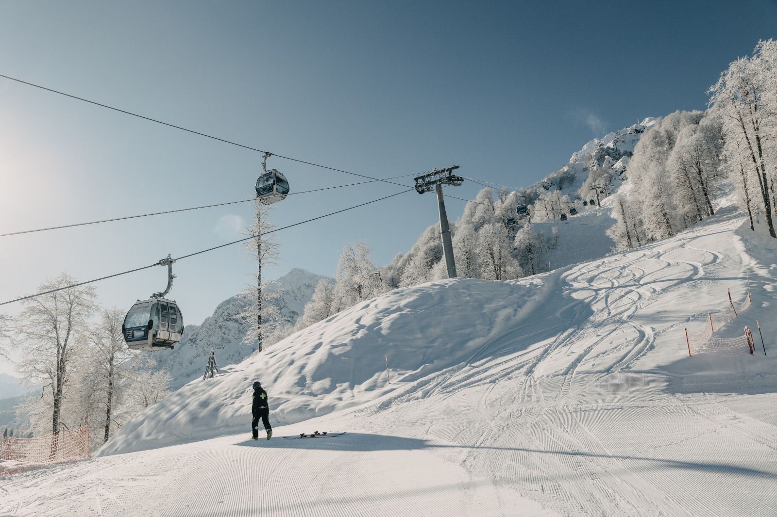Самолетом до аэропорта Адлер, далее на автобусе №105э до остановки «Роза Хутор», затем пройти 264 м. до апартаментов