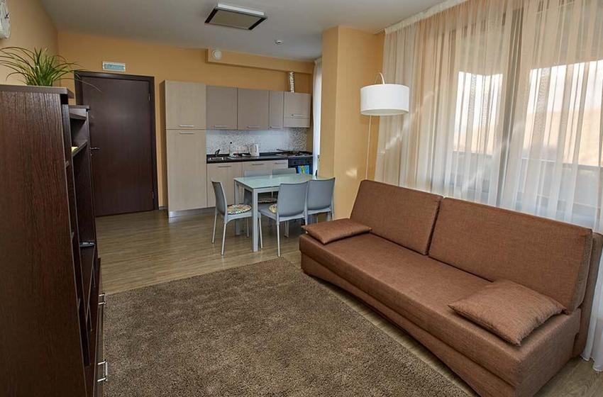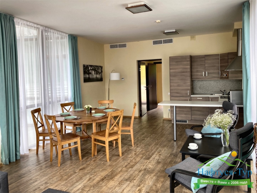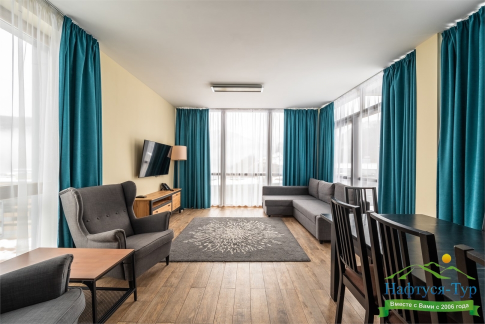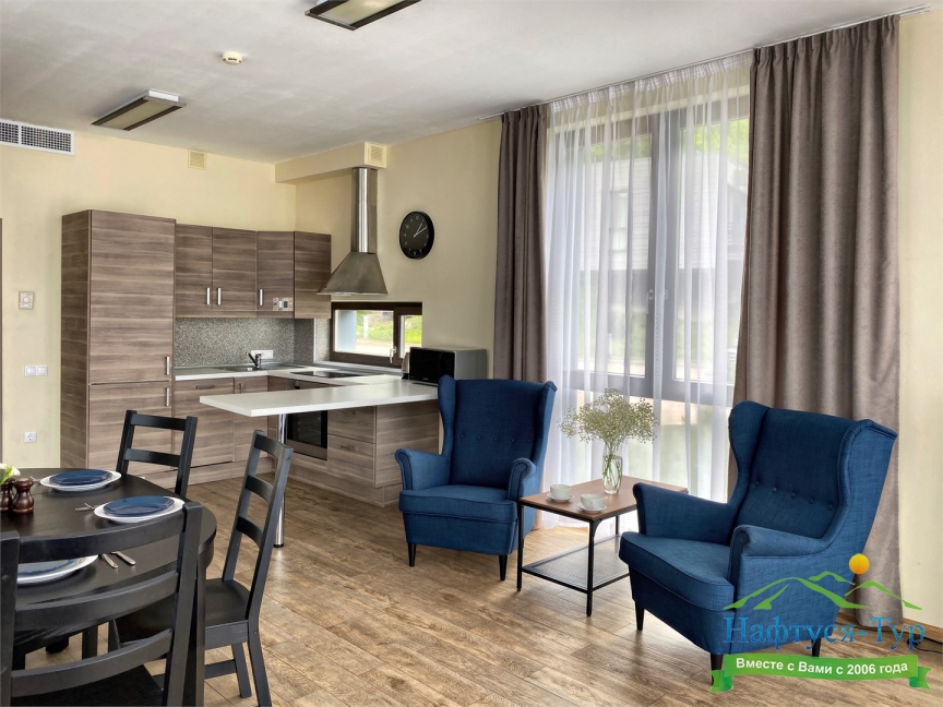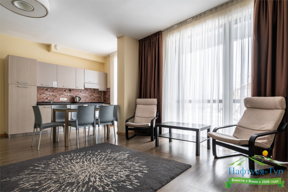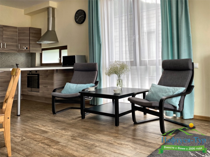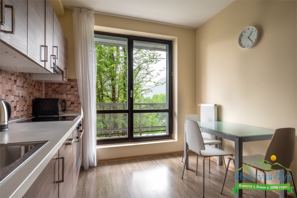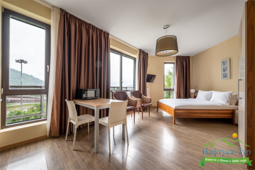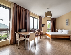 · Современный и уютный отель, полностью соответствует своему уровню. Просторные номера комфорт, по сути квартира с кухней и всем необходимым, чистота в номерах, уборка каждый день и без напоминаний, прекрасный вид на горы из окон и терассы.