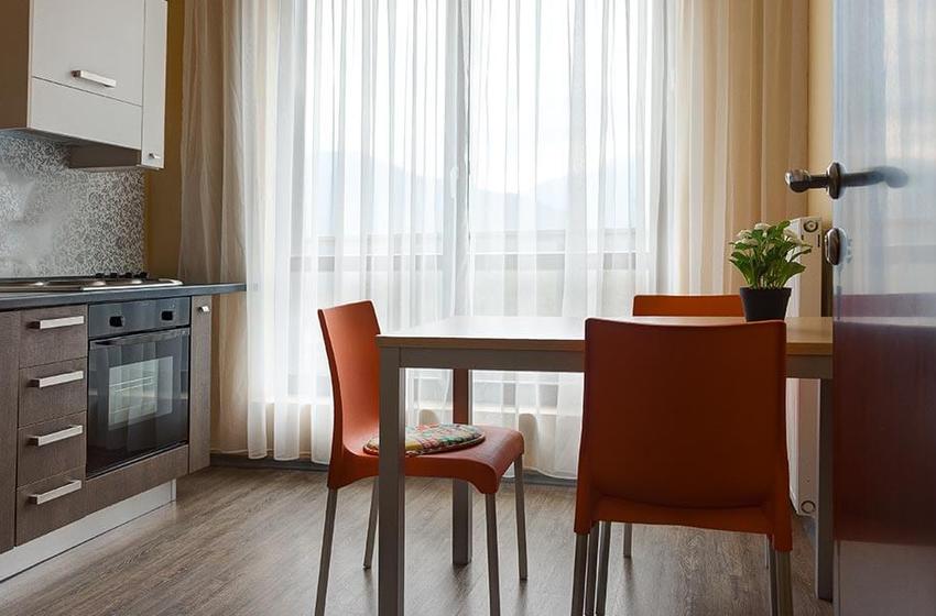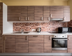 духовой шкаф, микроволновая печь, набор посуды, плита электрическая, телевизор, телефон, холодильник, чайник