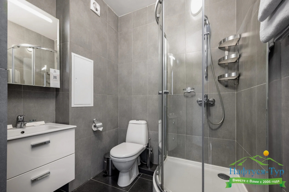2 санузла, с душевой кабиной, туалетные принадлежности, фен