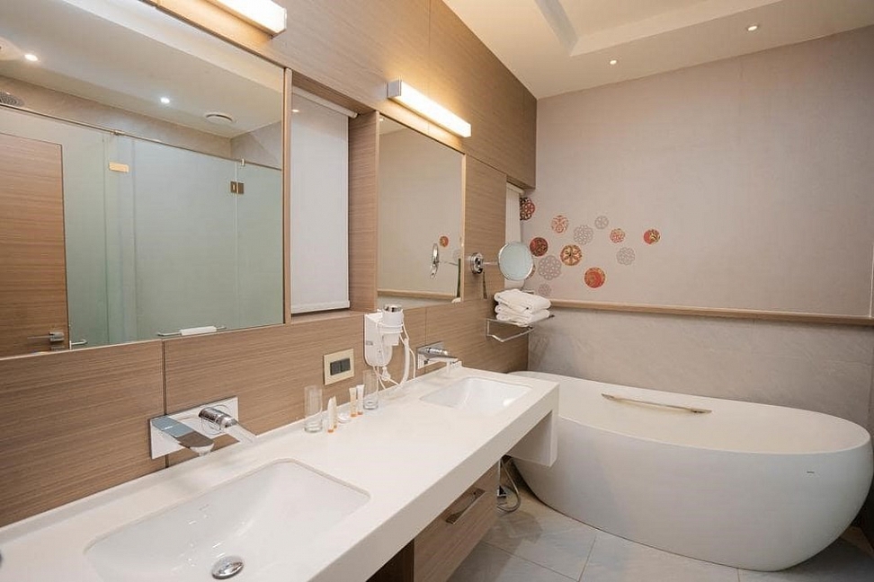 · Удобное расположение, очень вкусные завтраки в формате бизнес-ланча (600 руб), есть сушилка для горного инвентаря за 300 руб. в сутки. Сначала дали номер без ванны (только душ), но потом девушка на рецепшн любезно заменила номер.