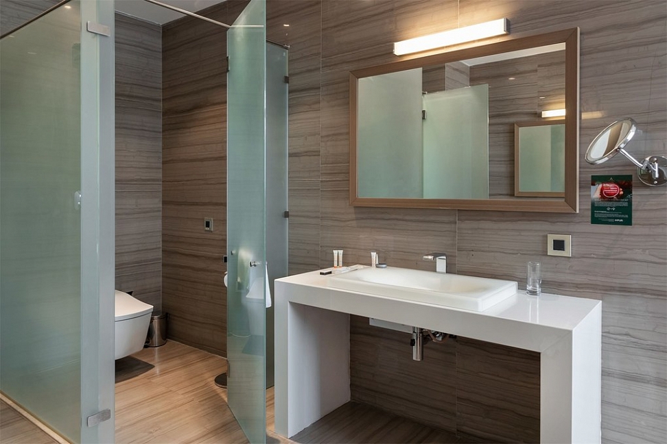 с ванной или душевой кабиной, туалетные принадлежности