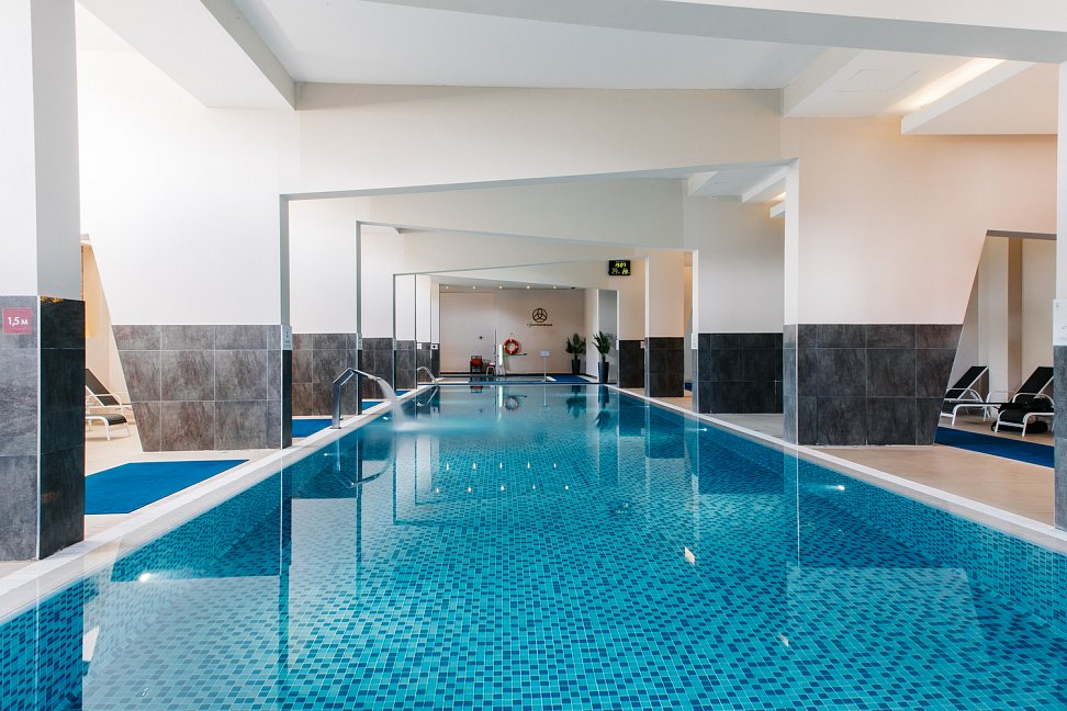 • Бассейн крытый, 25х6, вода пресная, входит в стоимость. Вас ждут финская сауна, аромапаровая, снежная комната и зона релаксации и фитнес-центр с панорамными окнами и видом гор Кавказского хребта.